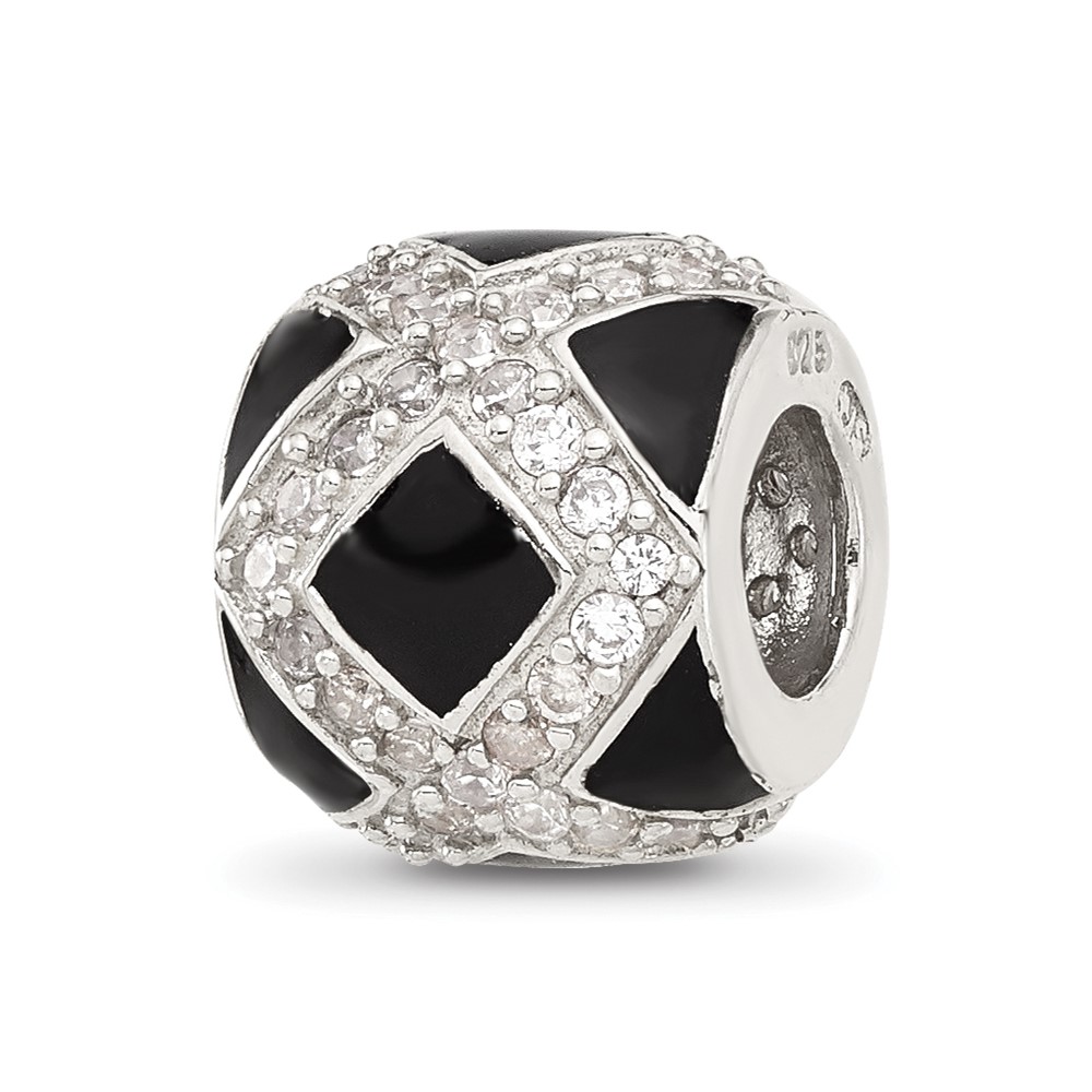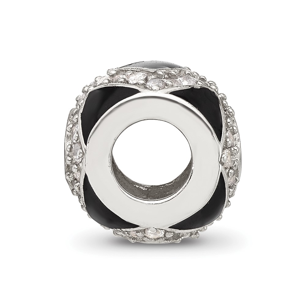 Sterling Silver Reflections CZ Black Enameled Fancy Bead