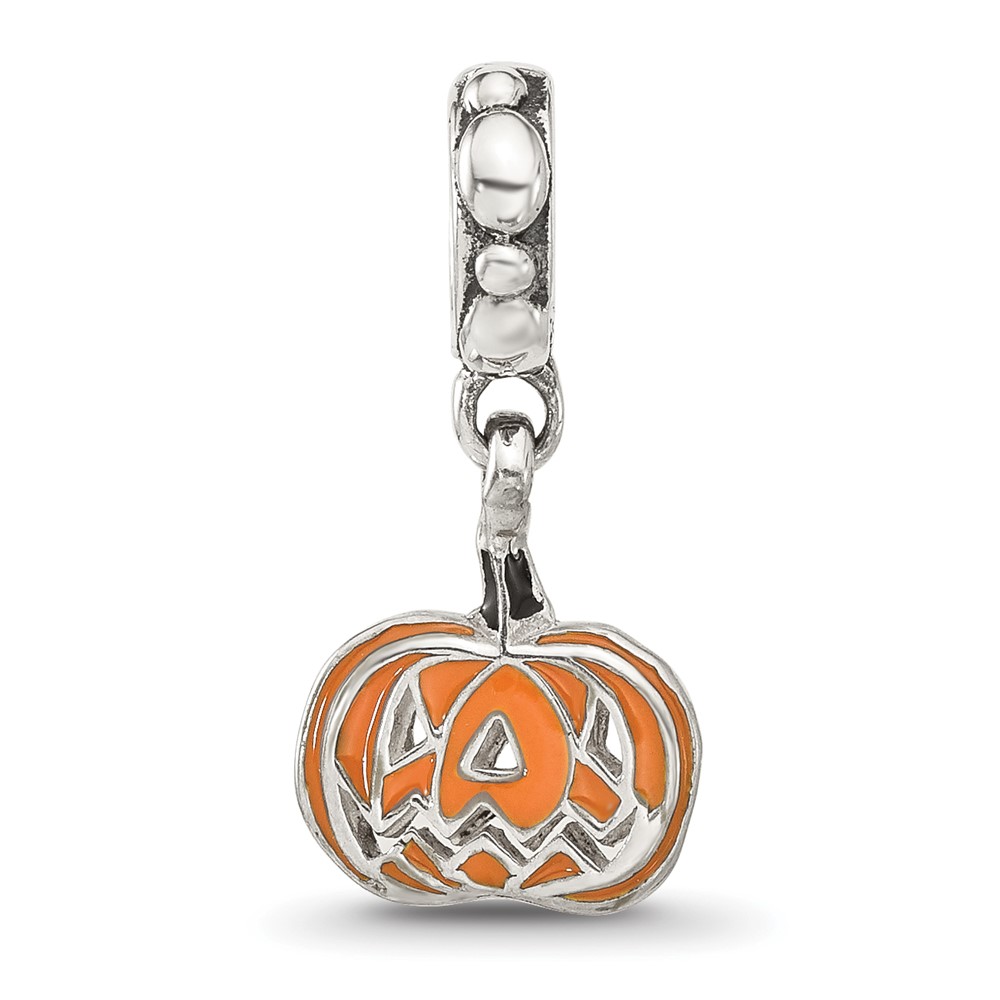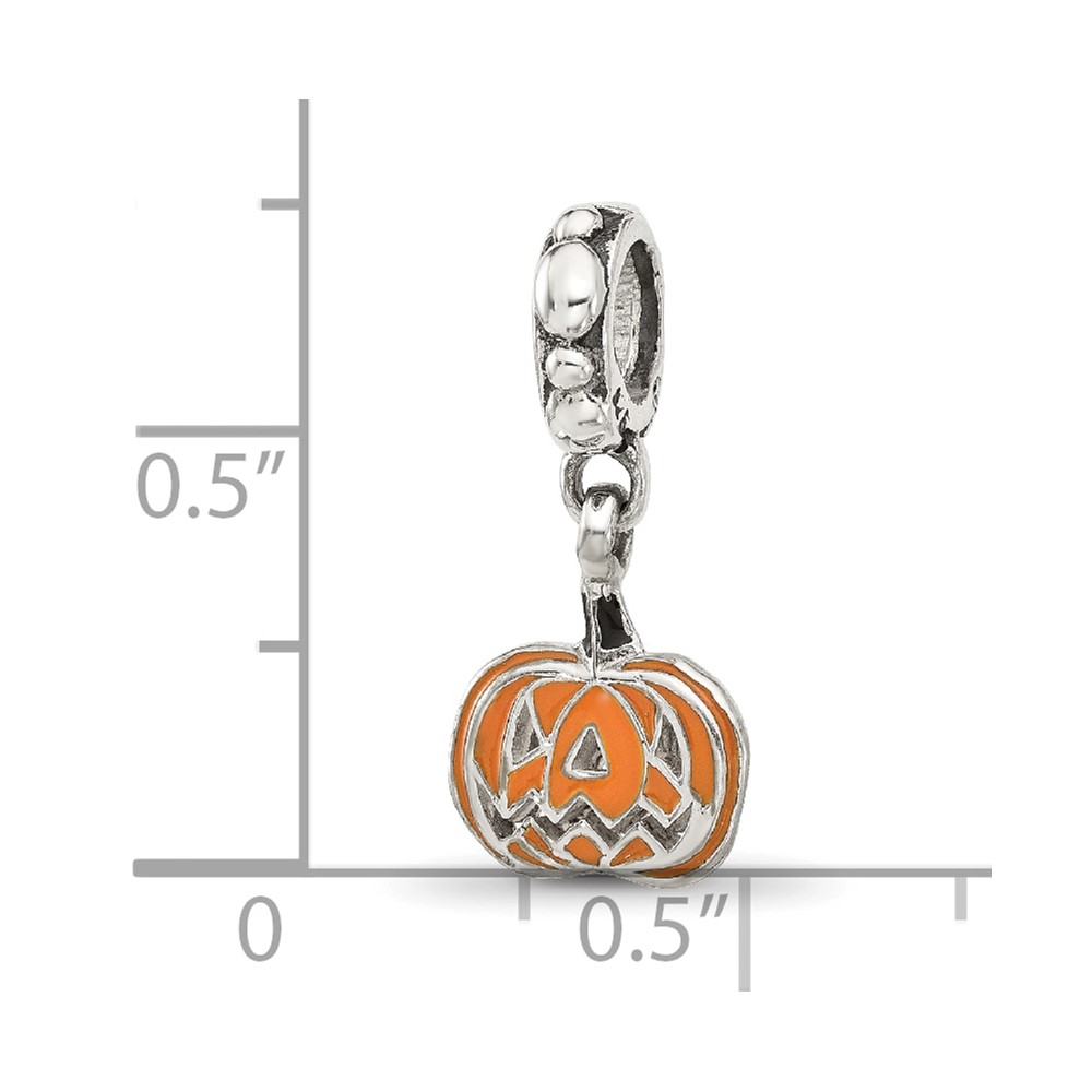 Sterling Silver Reflections Orange Enameled Pumpkin Dangle Bead