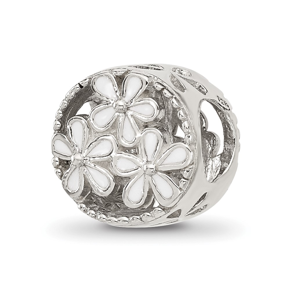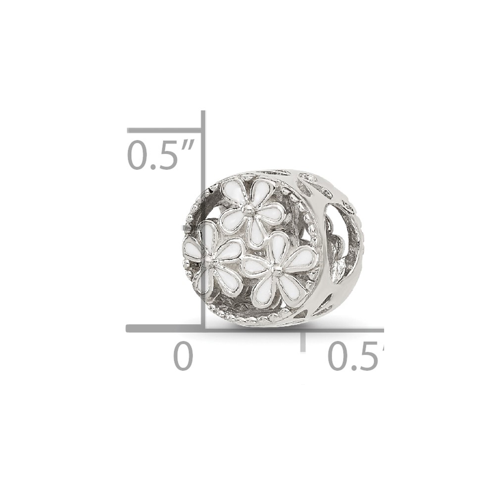 Sterling Silver Reflections White Enameled Floral Circle Bead