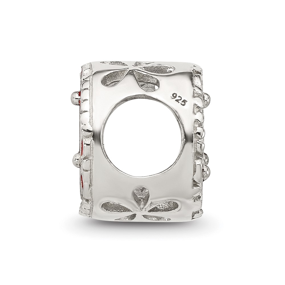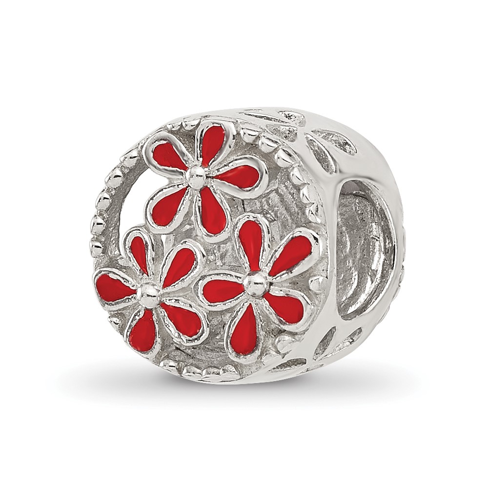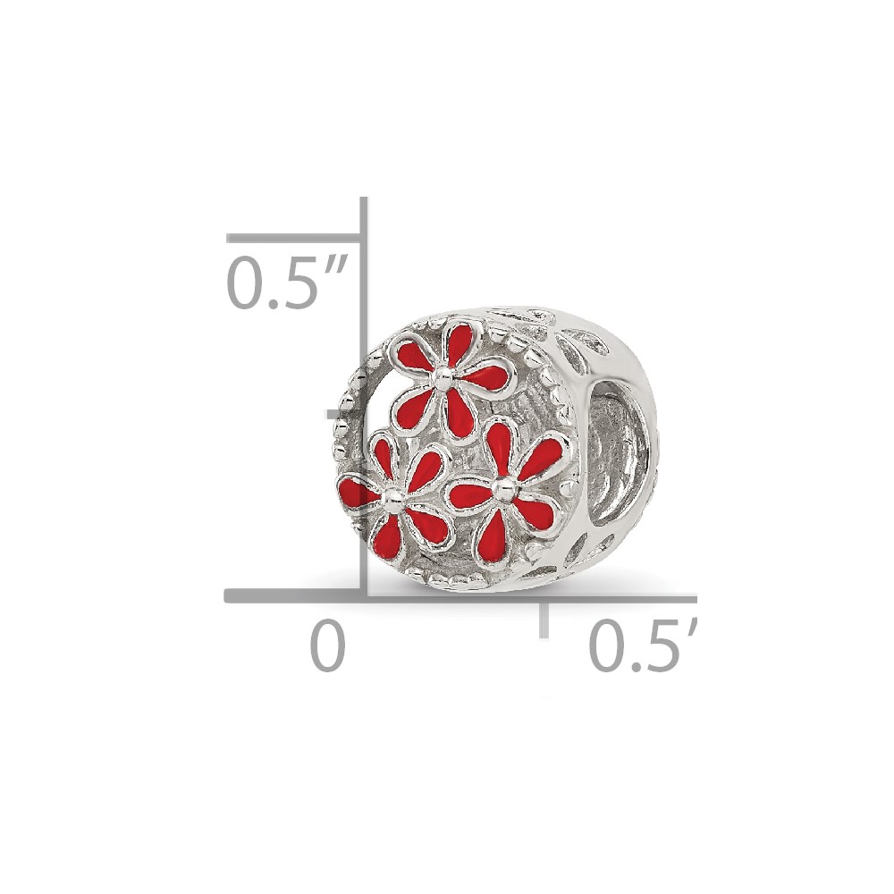 Sterling Silver Reflections Red Enameled Floral Circle Bead
