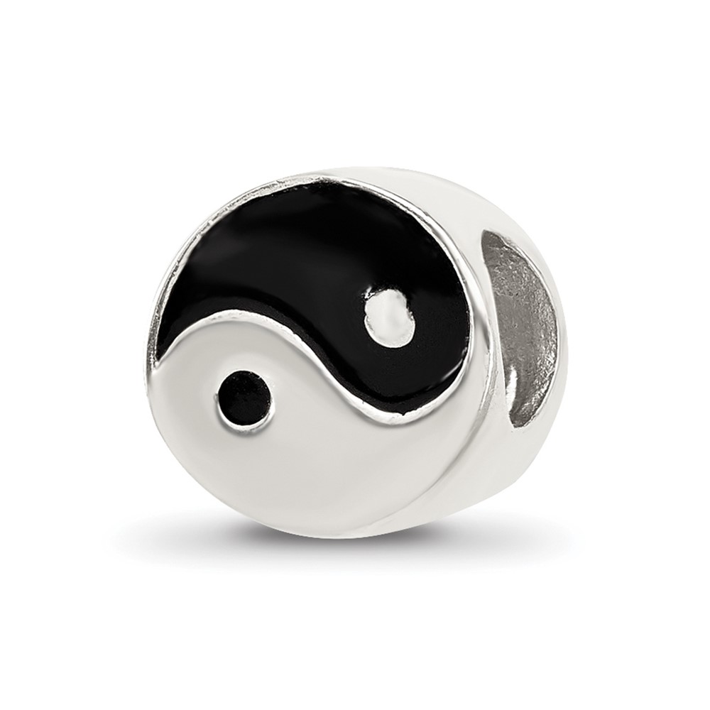 Sterling Silver Reflections Enameled Yin and Yang Circle Bead