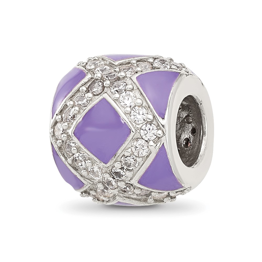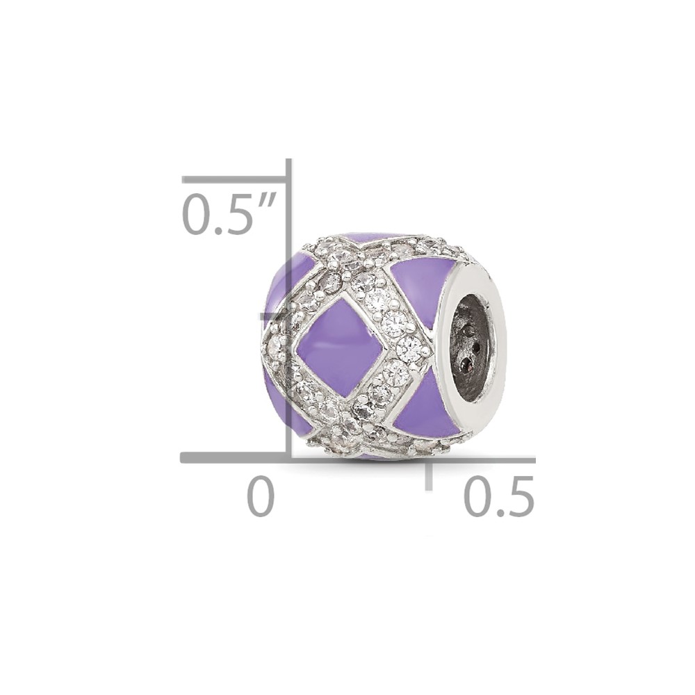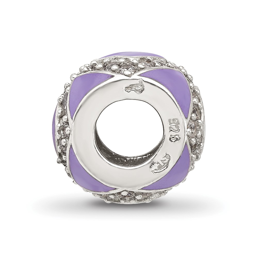 Sterling Silver Reflections Purple and CZ Enameled Design Bead