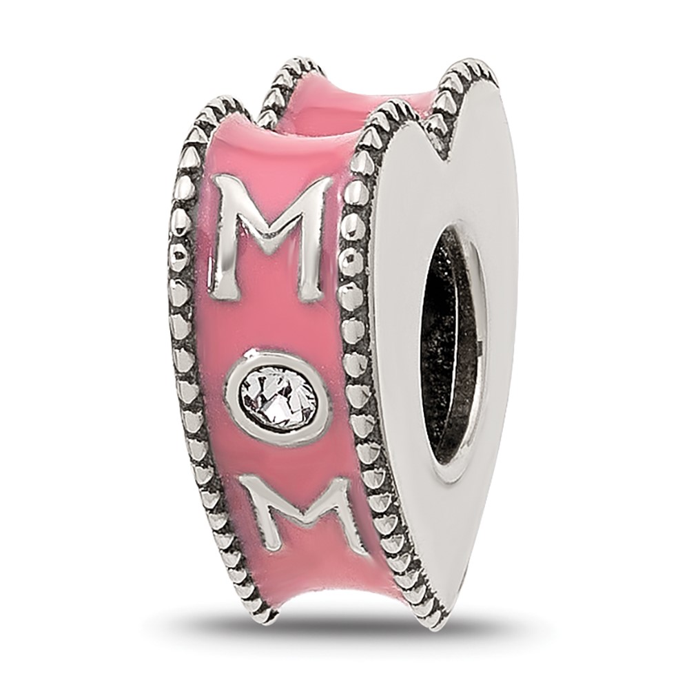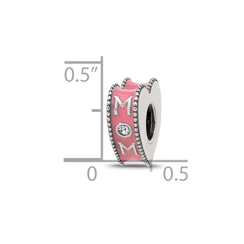 Sterling Silver Reflections Crystal and Enamel Pink Heart MOM Bead