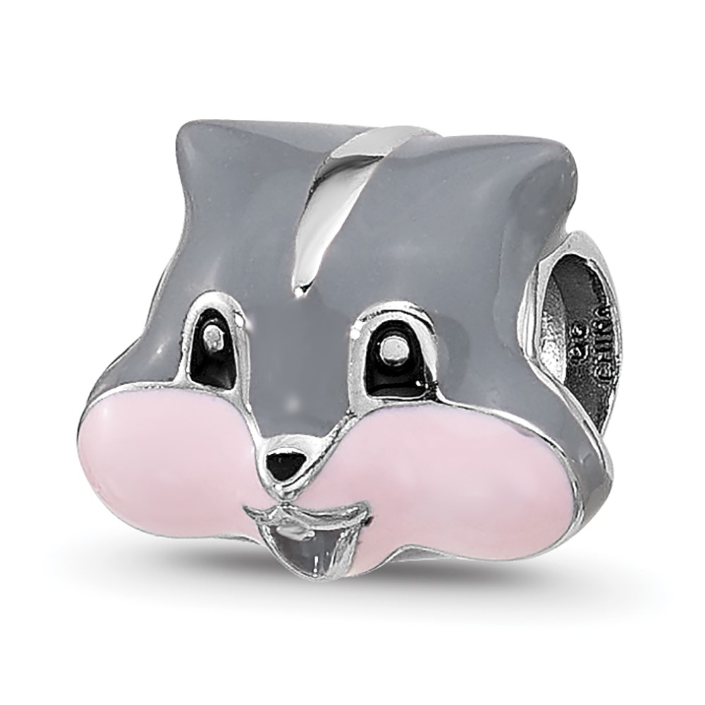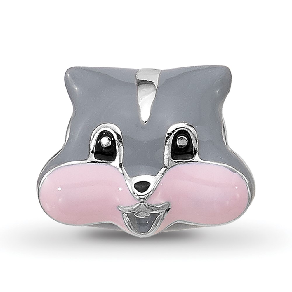 Sterling Silver Reflections Kids Enamel Grey Squirrel Face Bead