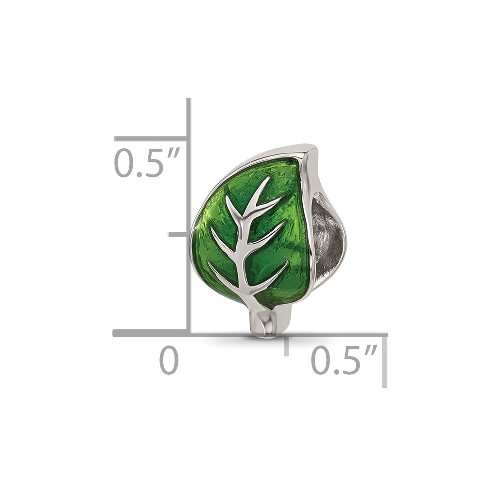 Sterling Silver Reflections Enamel Green Leaf Bead