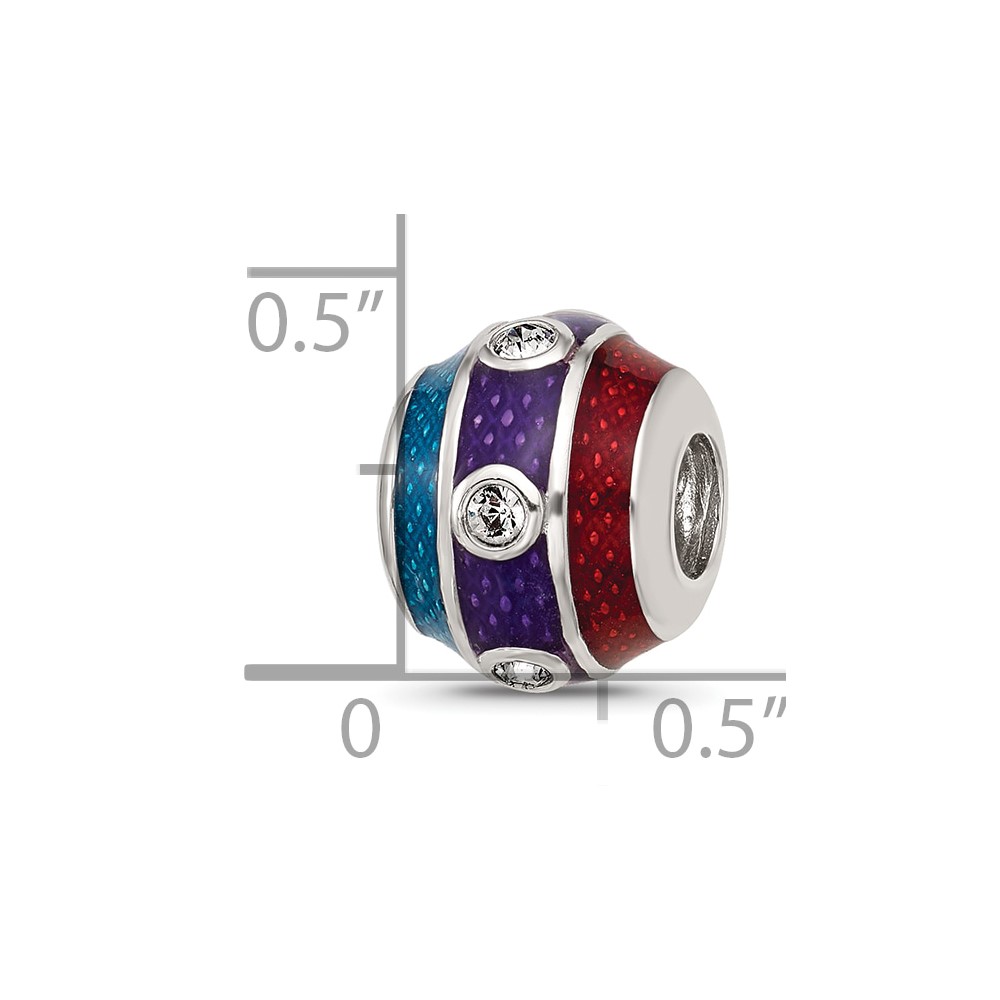 Sterling Silver Reflections Enamel 3 Colored Bead with Crystal Bead