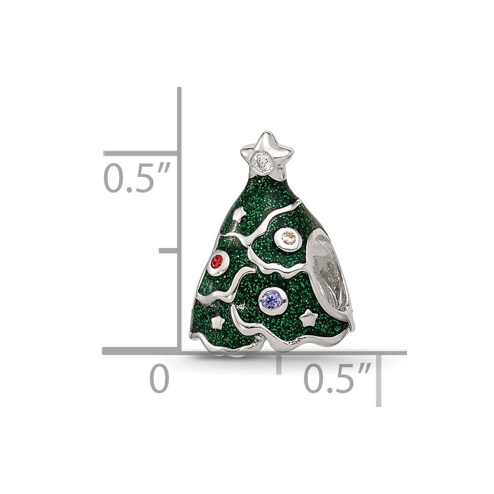Sterling Silver Reflections Enamel CZ Christmas Tree Bead