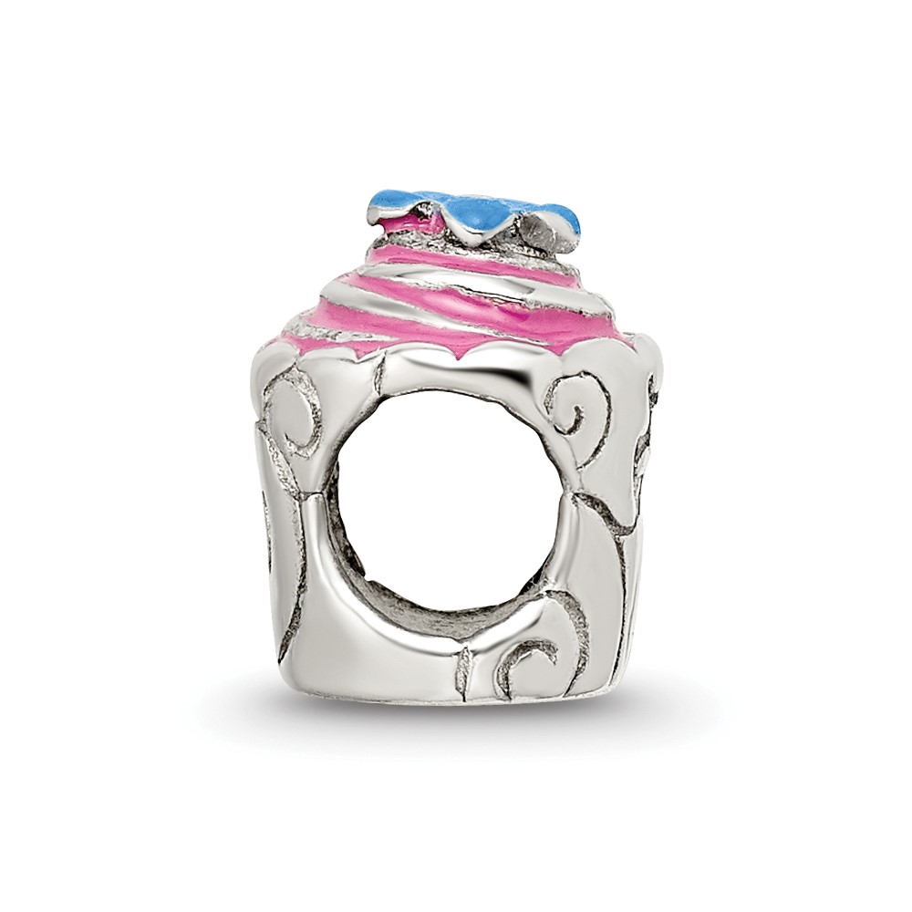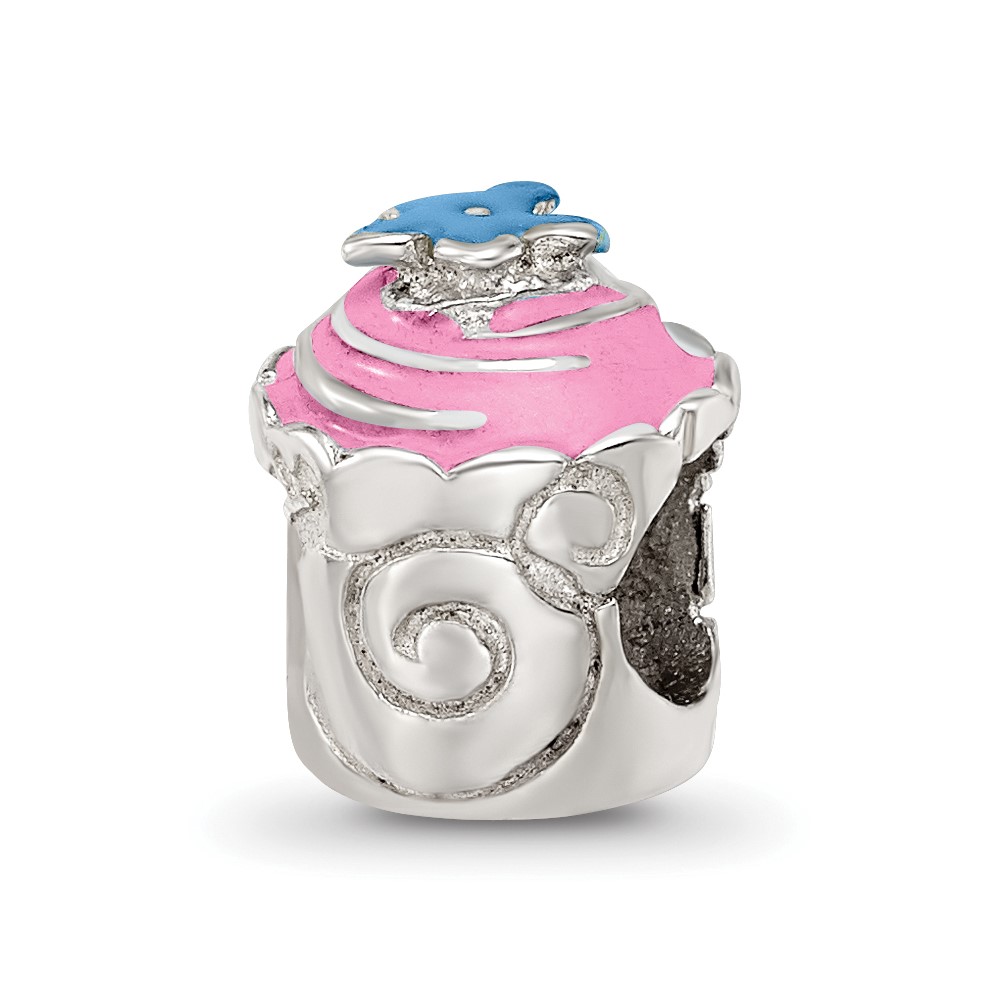 Sterling Silver Reflections Pink Enameled Cupcake Bead