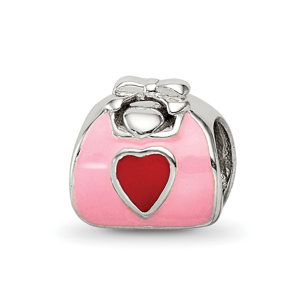 Sterling Silver Reflections Pink/Red Enameled Purse Bead