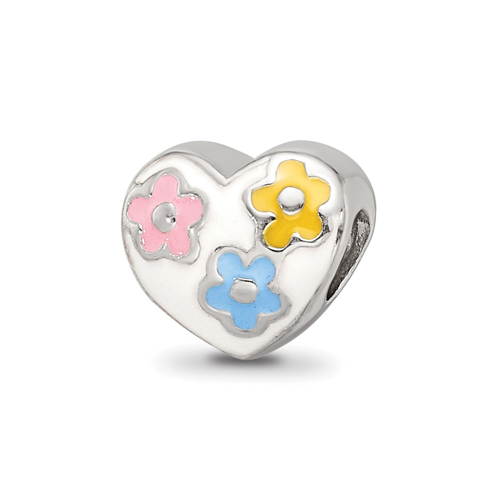 Sterling Silver Reflections Kids Enameled Heart w/Flowers Bead
