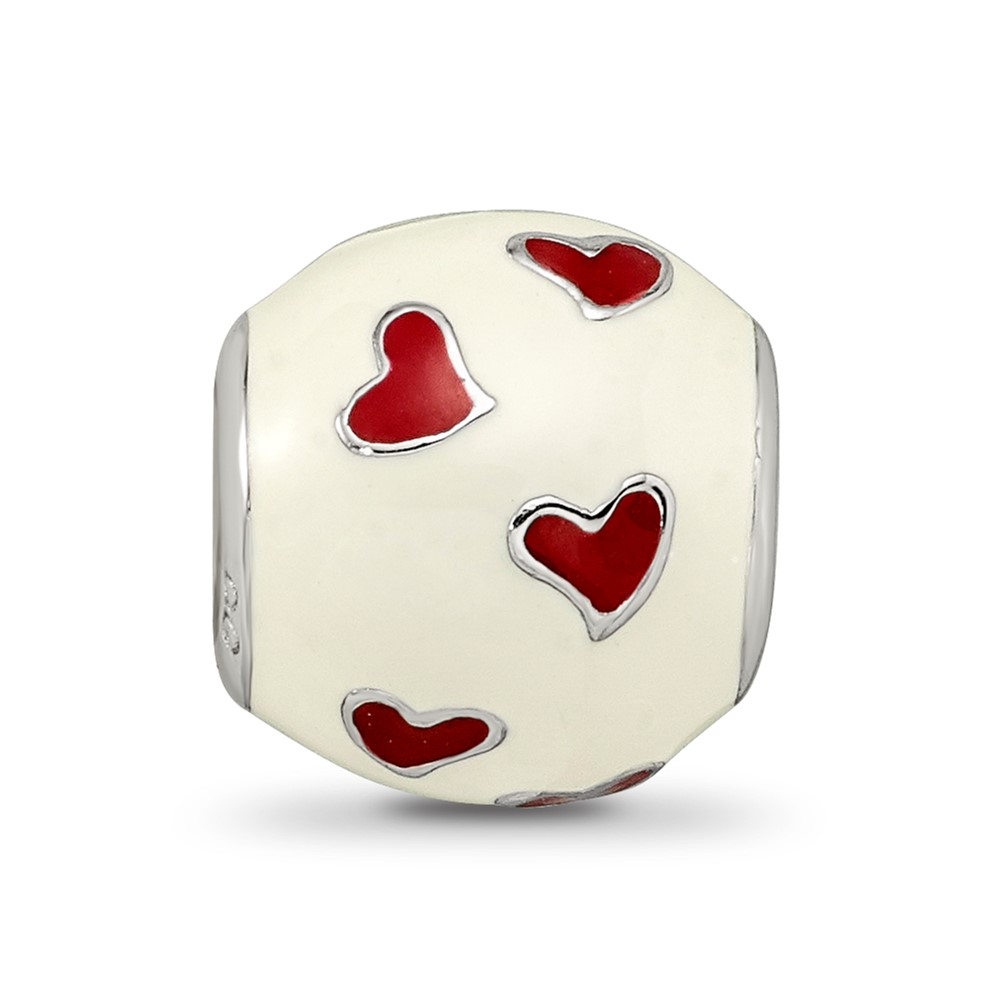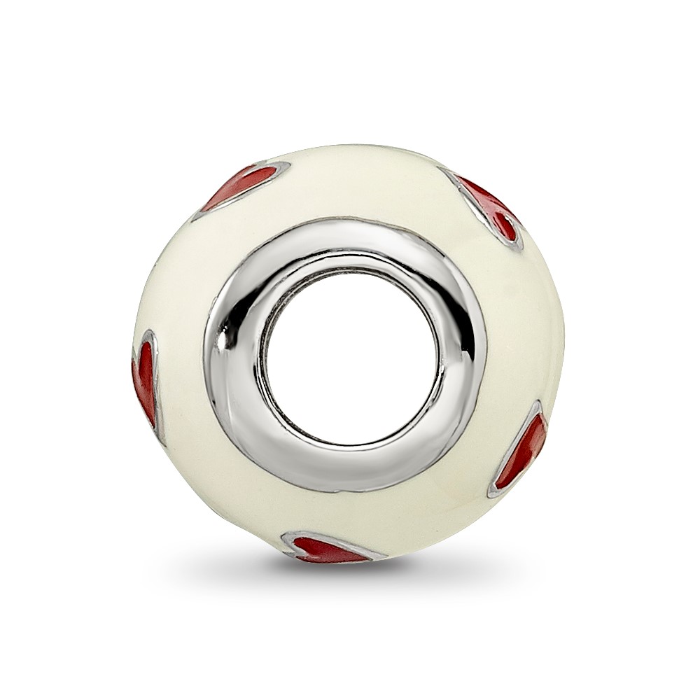 Sterling Silver Reflections Rhodium-plated Red & White Enamel Heart Bead