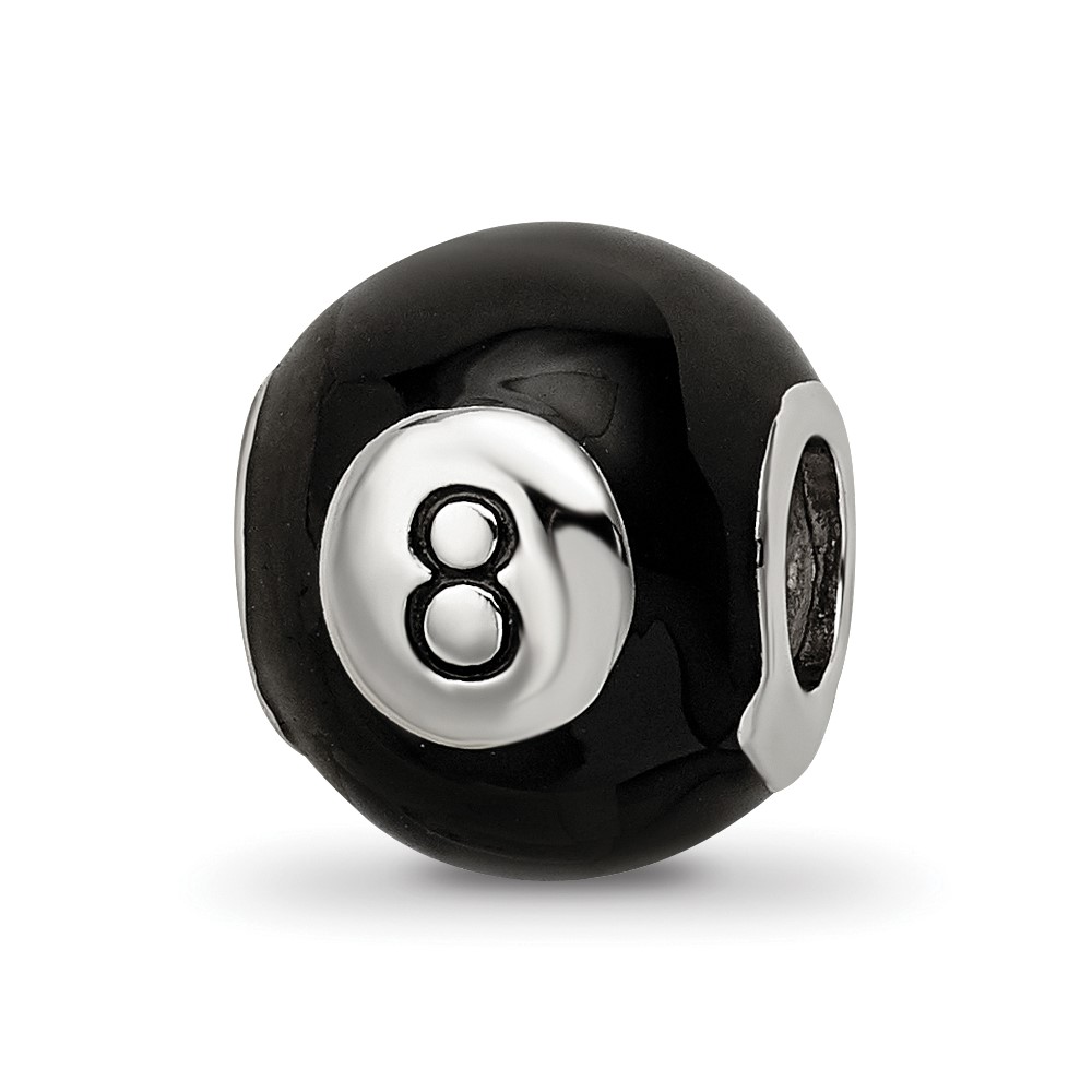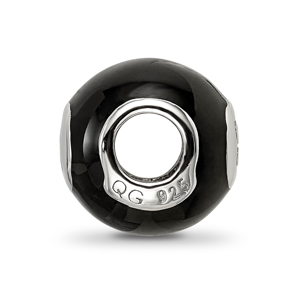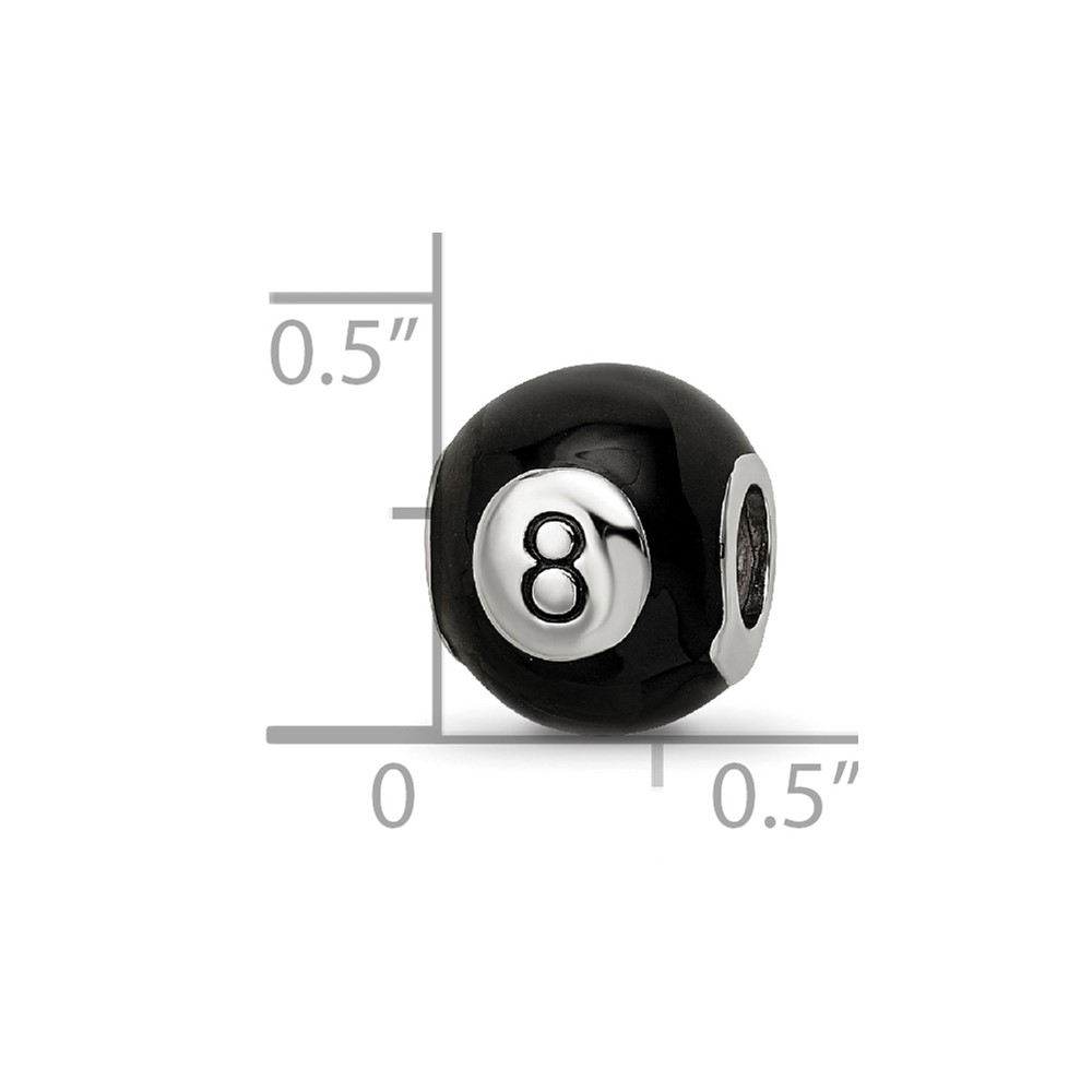 Sterling Silver Reflections Rhodium-plated Black Enamel 8-Ball Bead