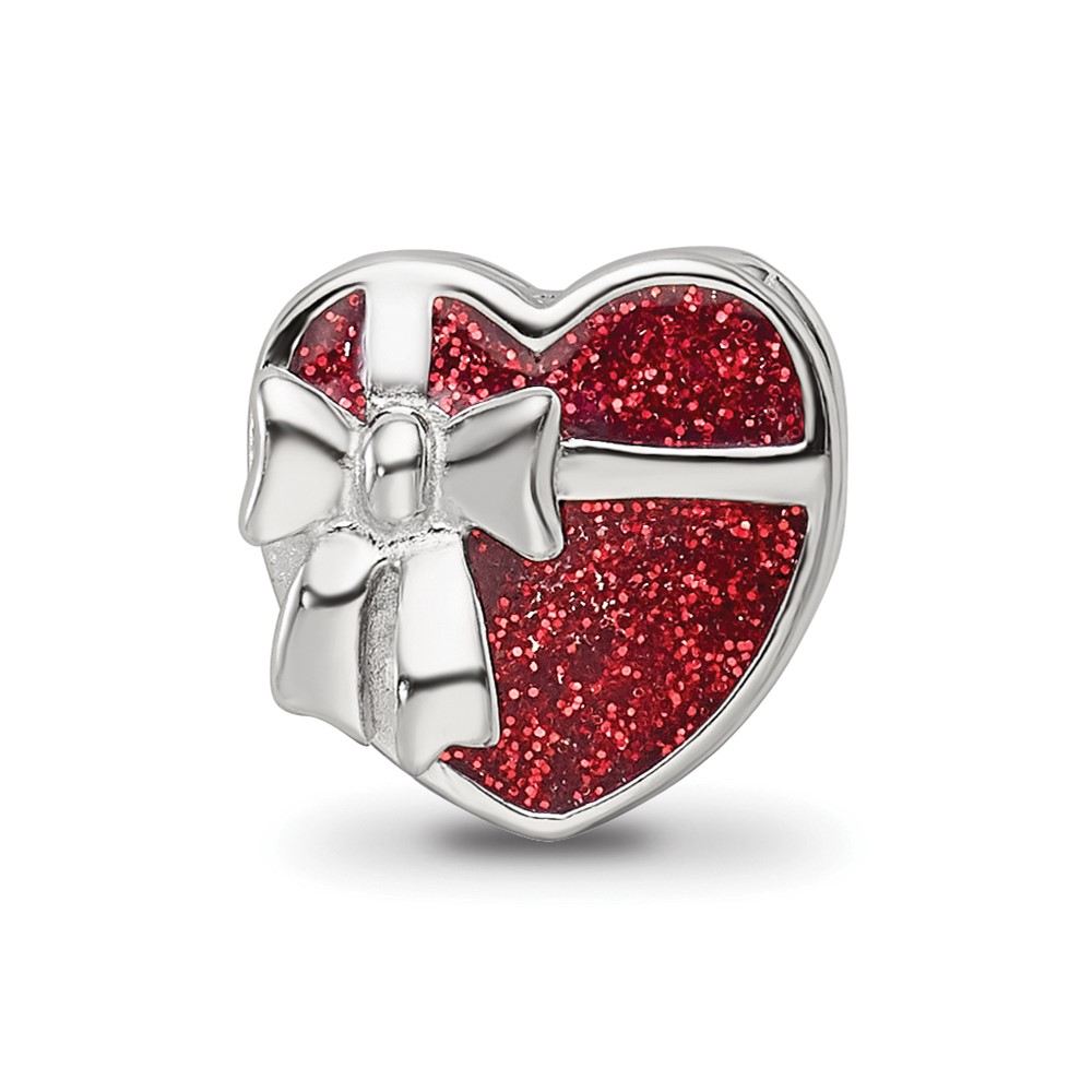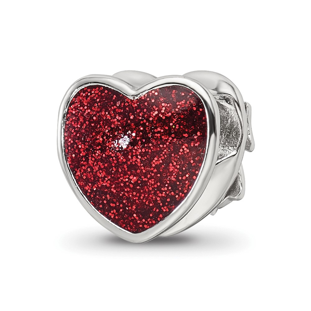 Sterling Silver Reflections Rhodium-plated Red Enameled Heart Bead