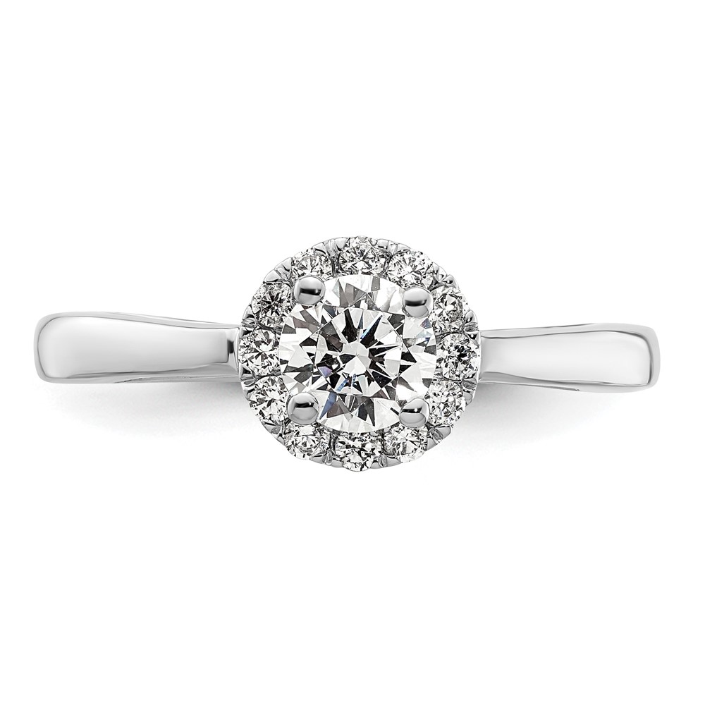 14k White Gold Halo (Holds 1/2 carat (5.1mm) Round Center) 1/5 carat Diamond Semi-mount Engagement Ring