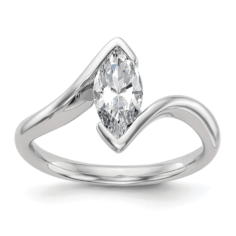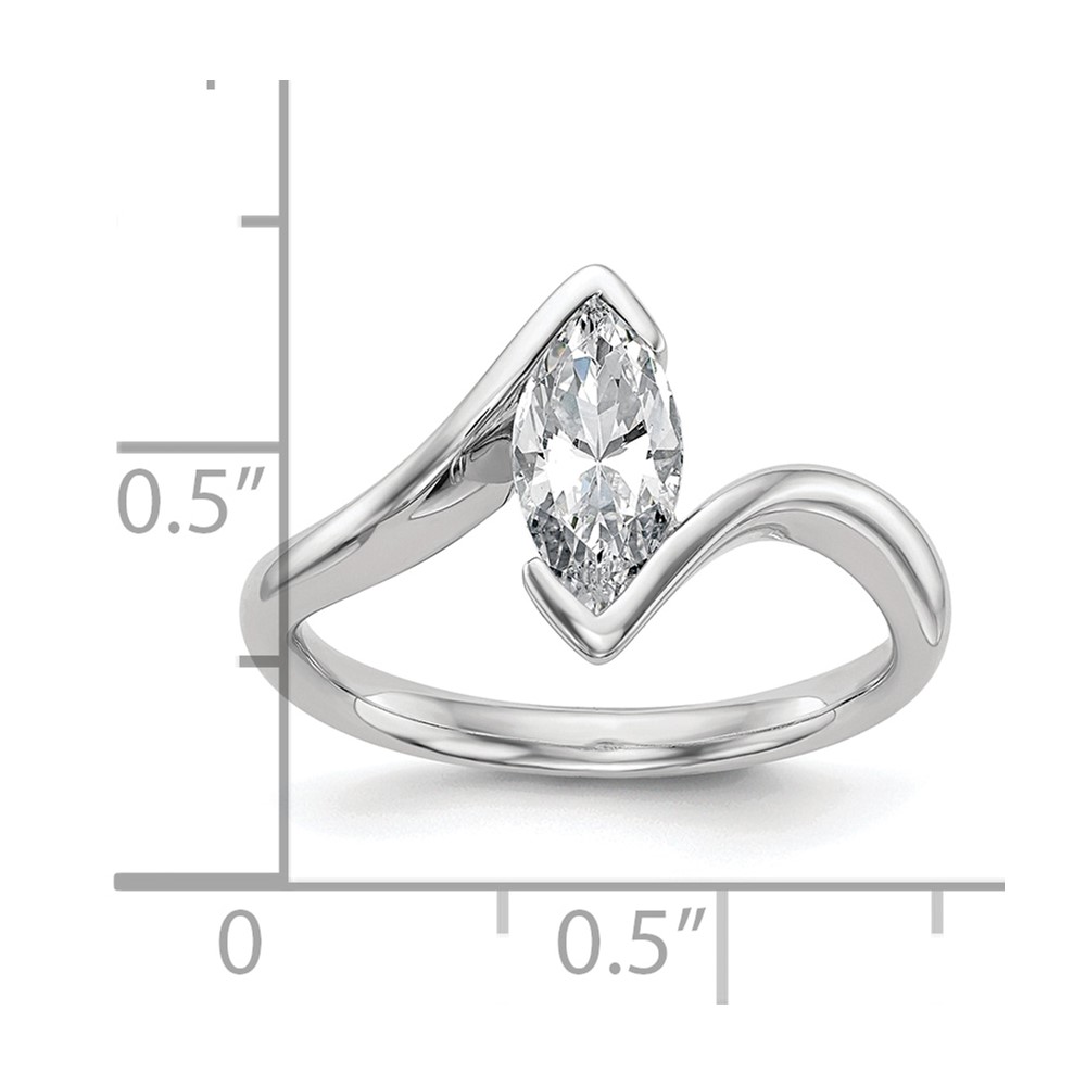 14k White Gold (Holds 1 carat (10x5mm) Marquise) Half-Bezel Bypass Solitaire Engagement Ring Mounting