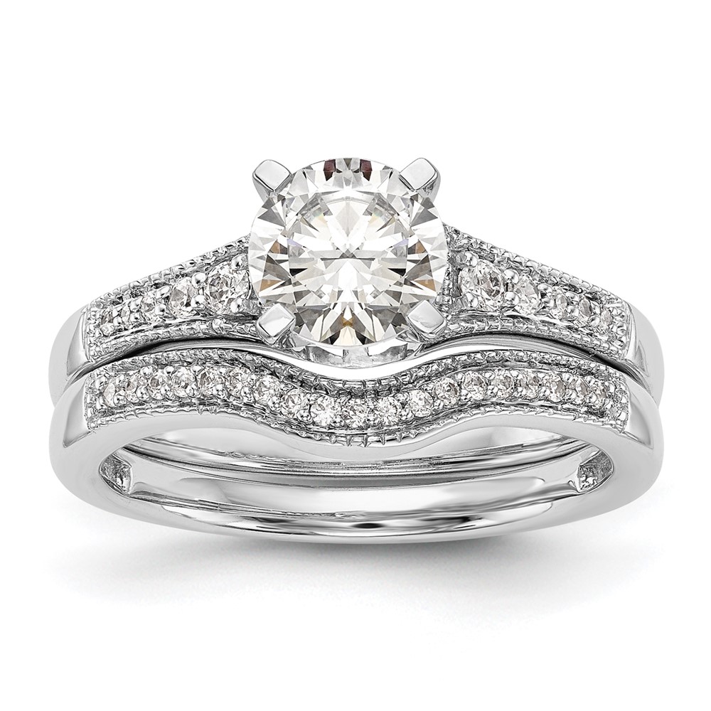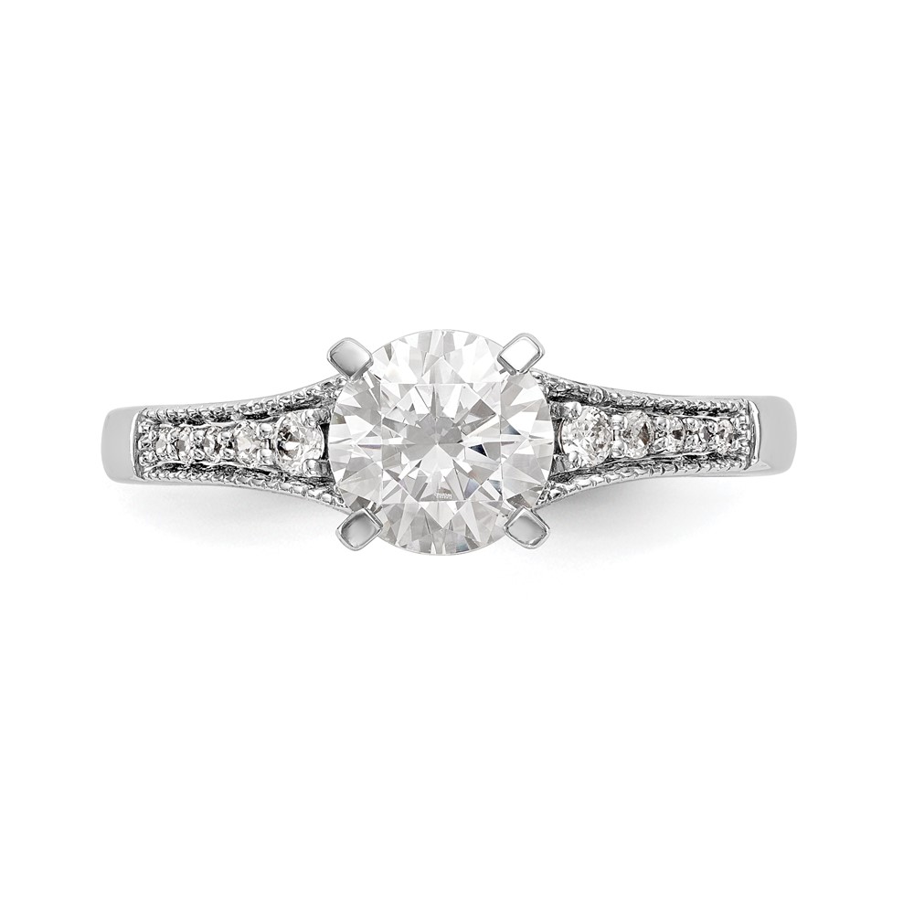 14k White Gold (Holds 1 carat (6.5mm) Round Center) 1/5 carat Diamond Semi-Mount Engagement Ring
