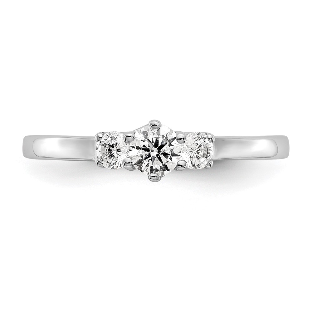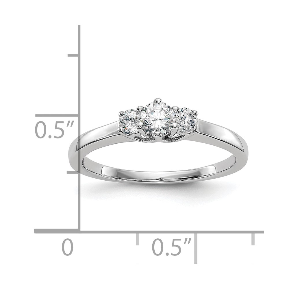 14K White Gold 3-Stone (Holds 1/4 carat (4.1mm) Round Center) Includes 2-2.7mm Round Side Diamonds Semi-Mount Engagement Ring