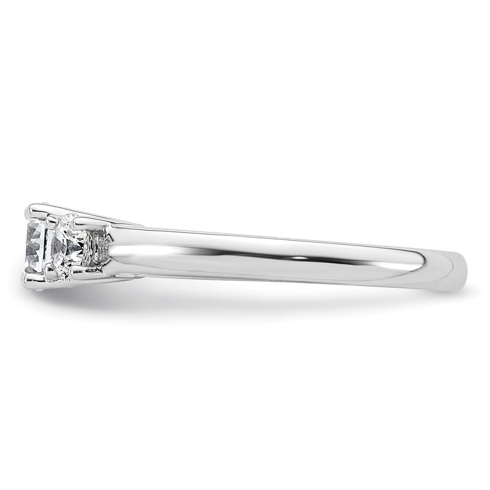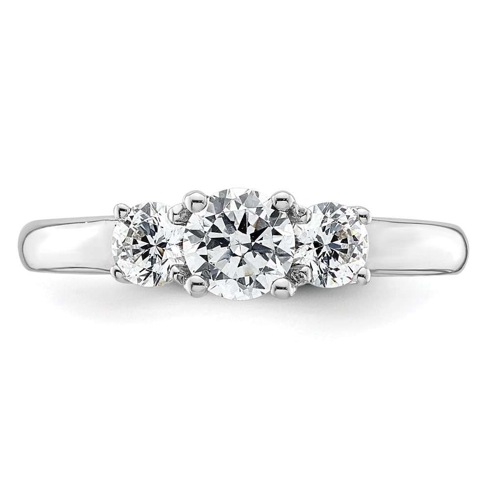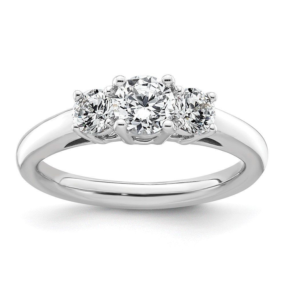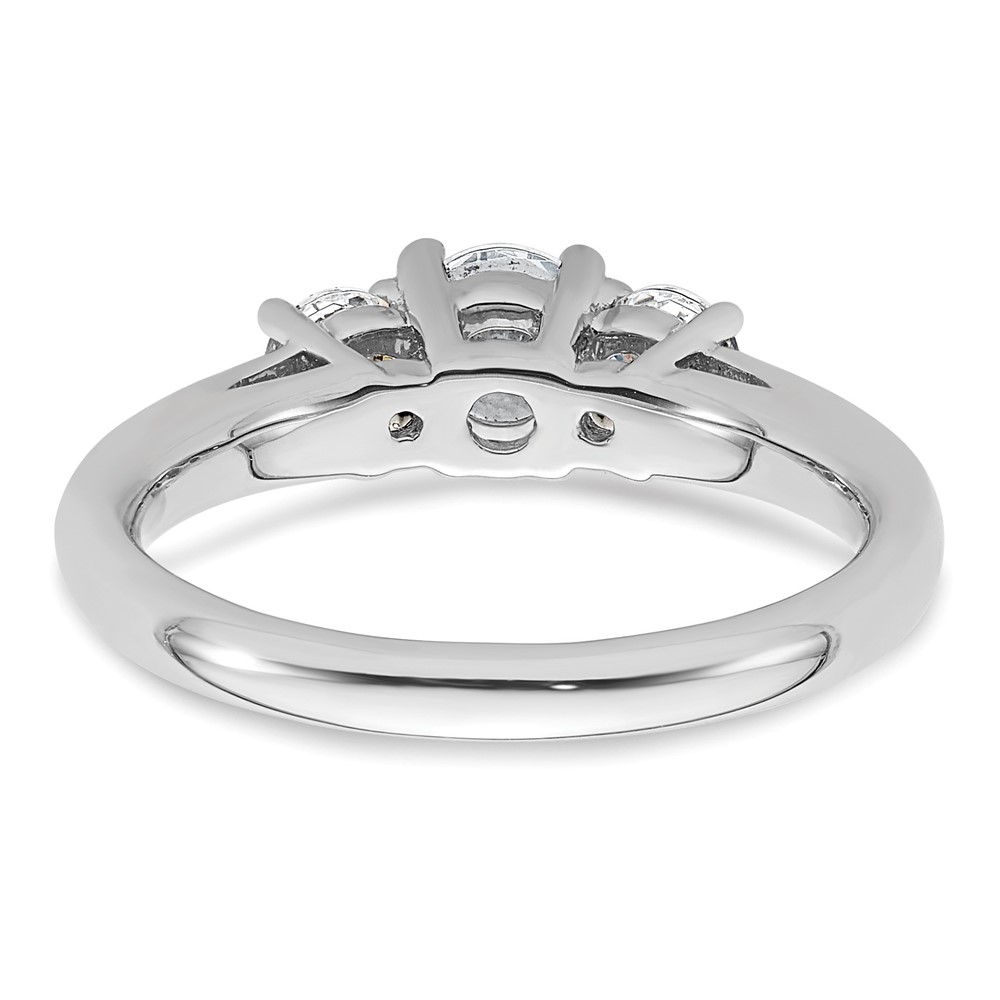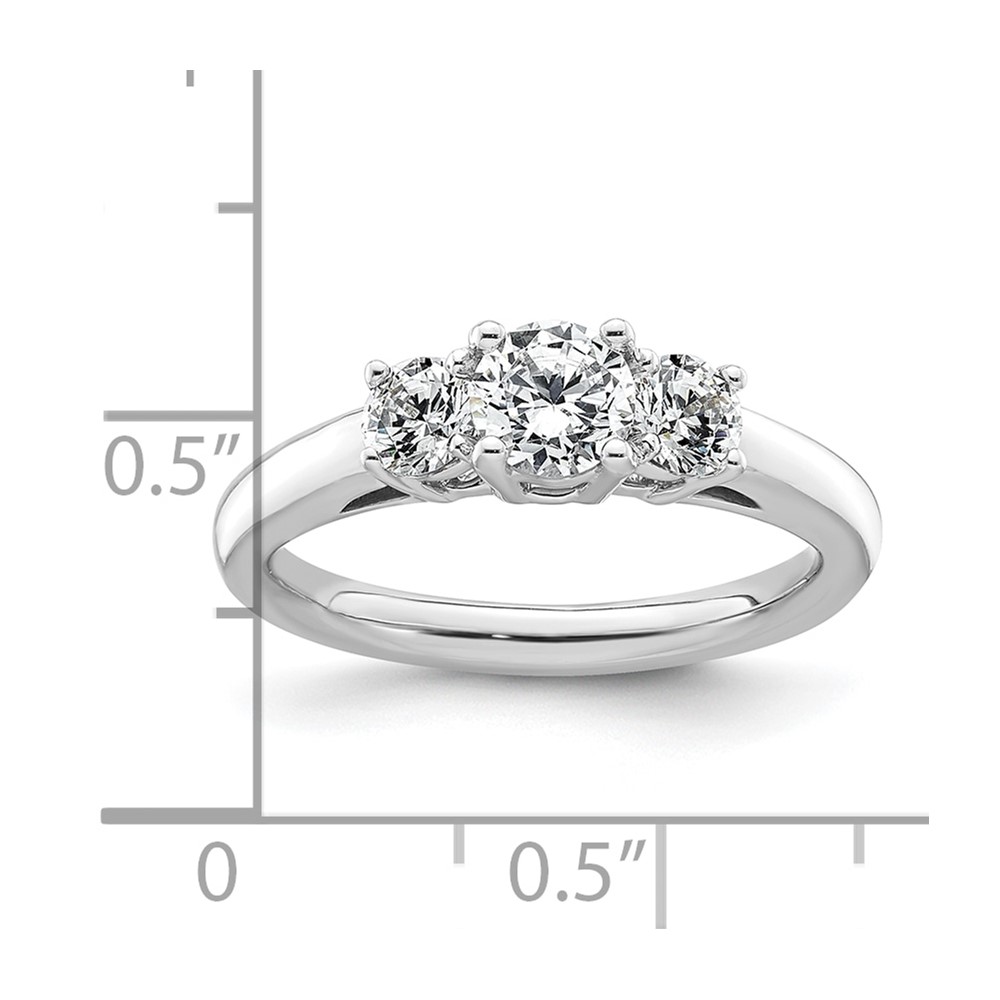 14K White Gold 3-Stone (Holds 1/2 carat (5.2mm) Round Center and (2-4.1mm) Round Sides) Engagement Ring Mounting
