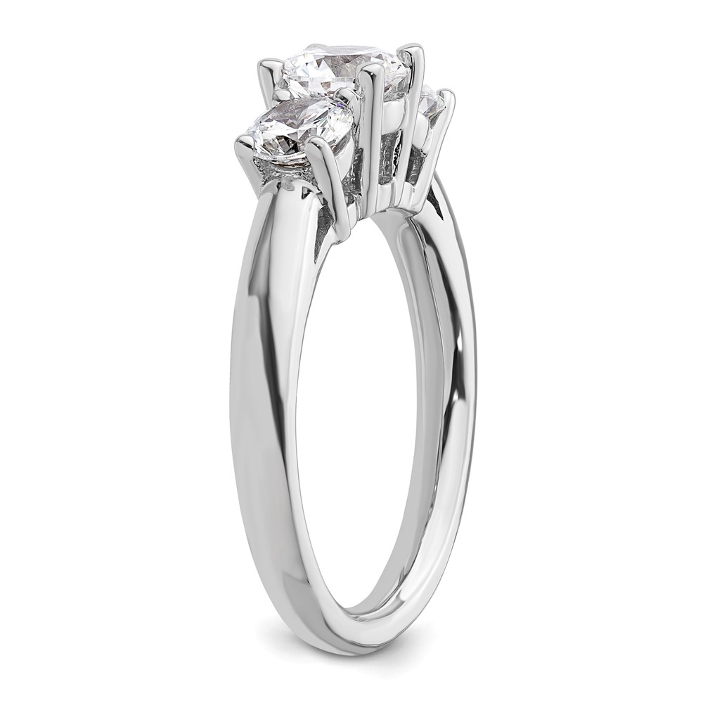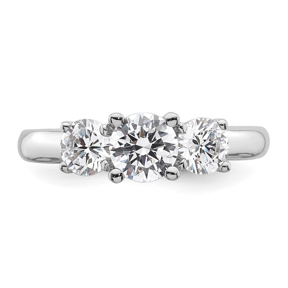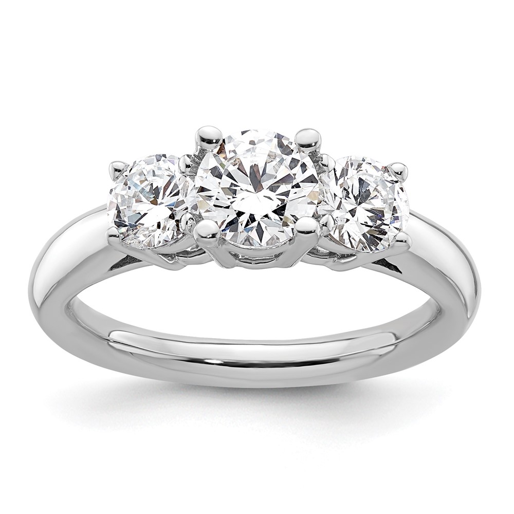 14K White Gold 3-Stone (Holds 3/4 carat (5.8mm) Round Center and (2-4.6mm) Round Sides) Engagement Ring Mounting