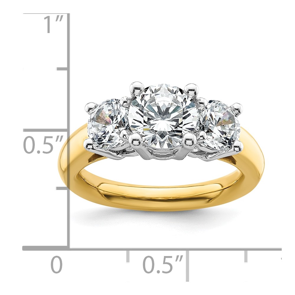 14K Two-tone 3-Stone (Holds 1.5 carat (7.5mm) Round Center and (2-5.8mm) Round Sides) Engagement Ring Mounting