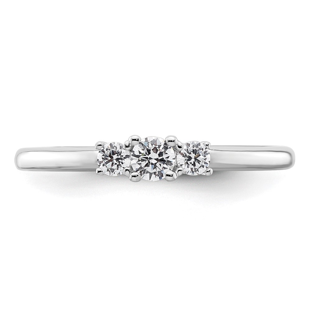 14K White Gold 3-Stone (Holds 1/8 carat (3.20mm) Round Center and (2-2.5mm) Round Sides) Engagement Ring Mounting