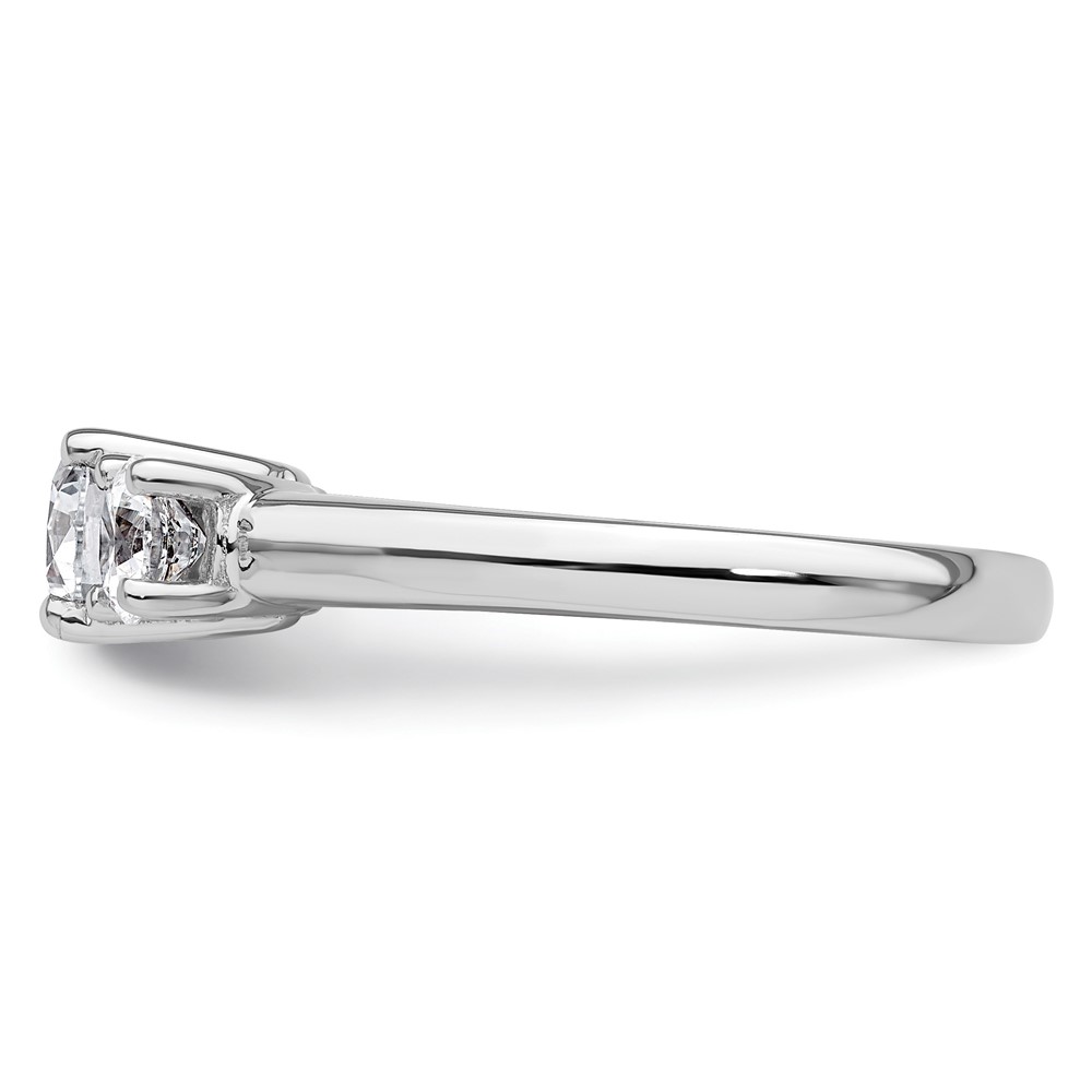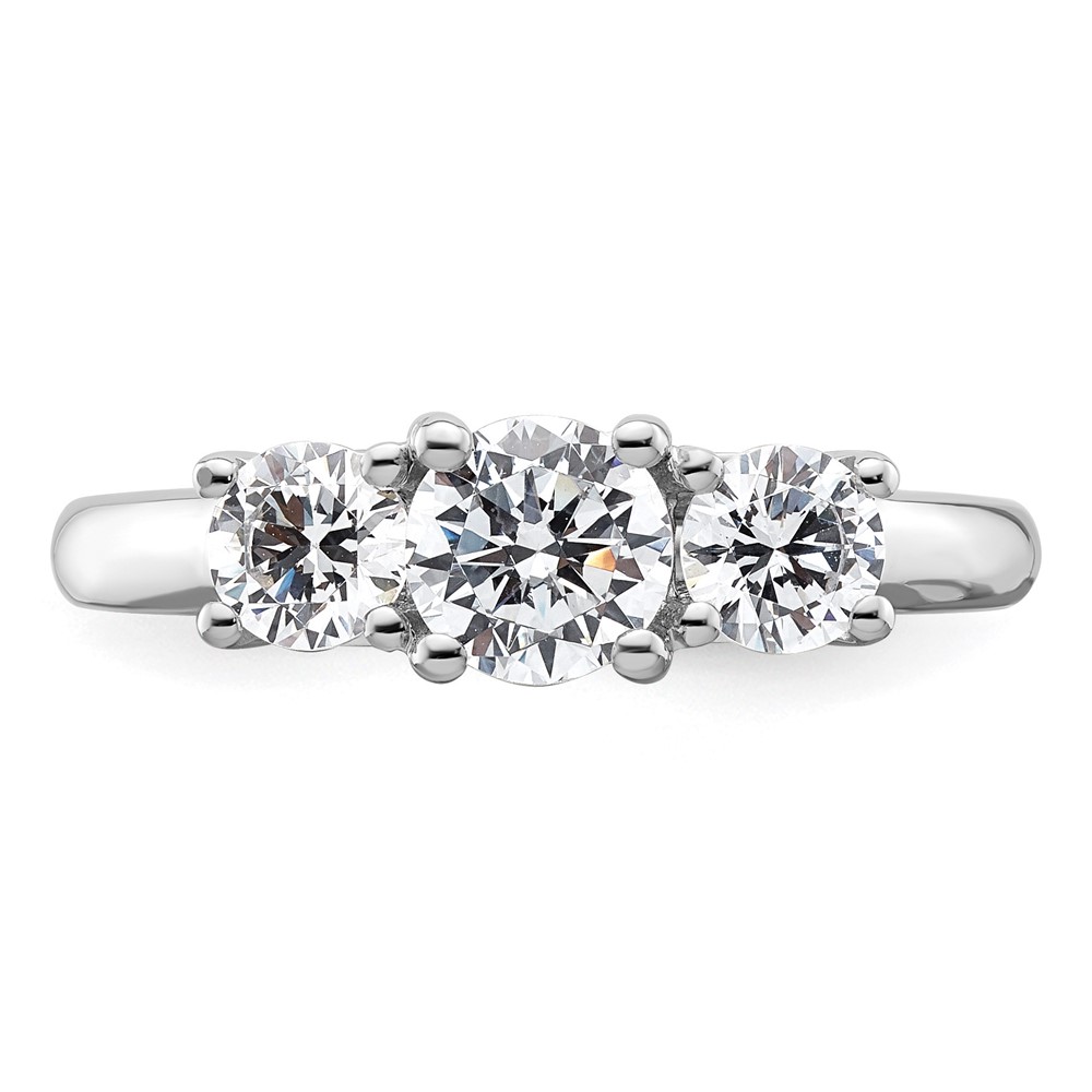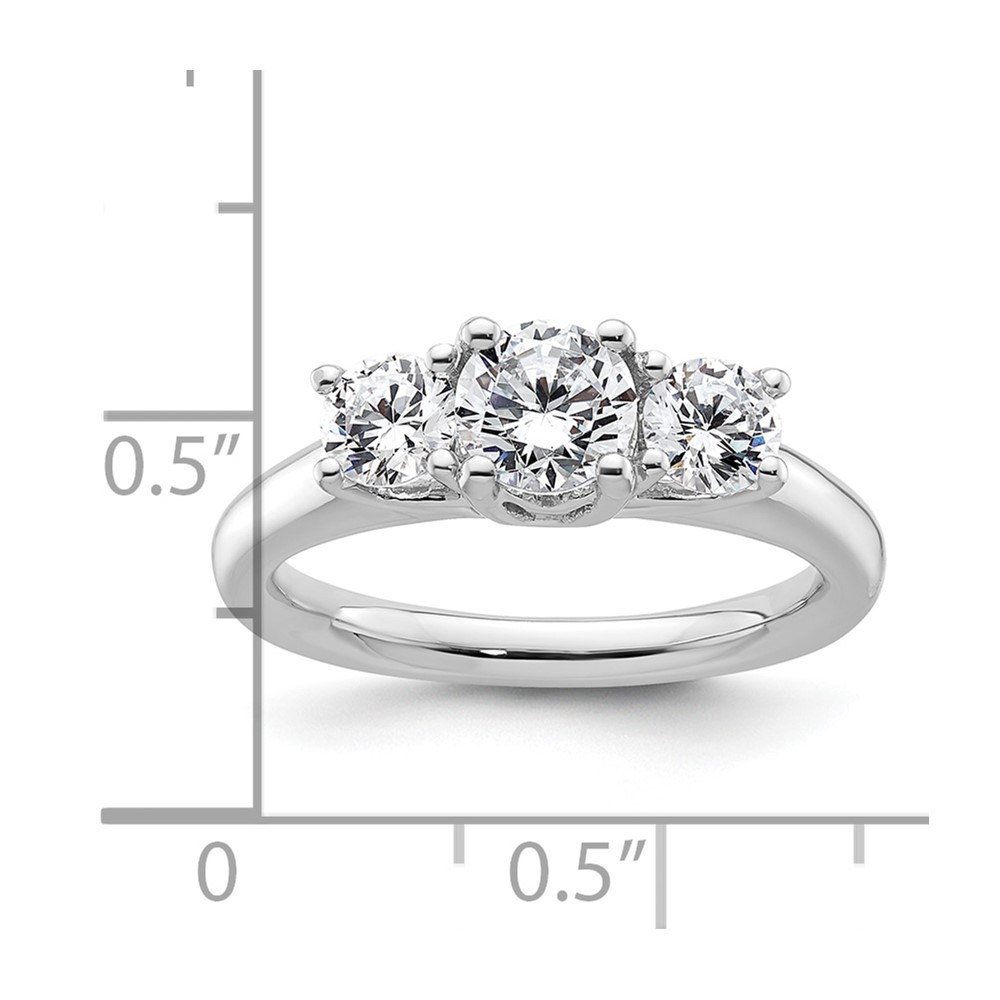 14K White Gold 3-Stone (Holds 3/4 carat (5.80mm) Round Center and (2-4.6mm) Round Sides) Engagement Ring Mounting
