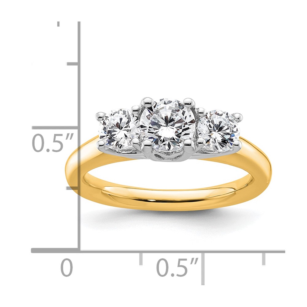 14K Two-tone 3-Stone (Holds 3/4 carat (5.80mm) Round Center and (2-4.6mm) Round Sides) Engagement Ring Mounting