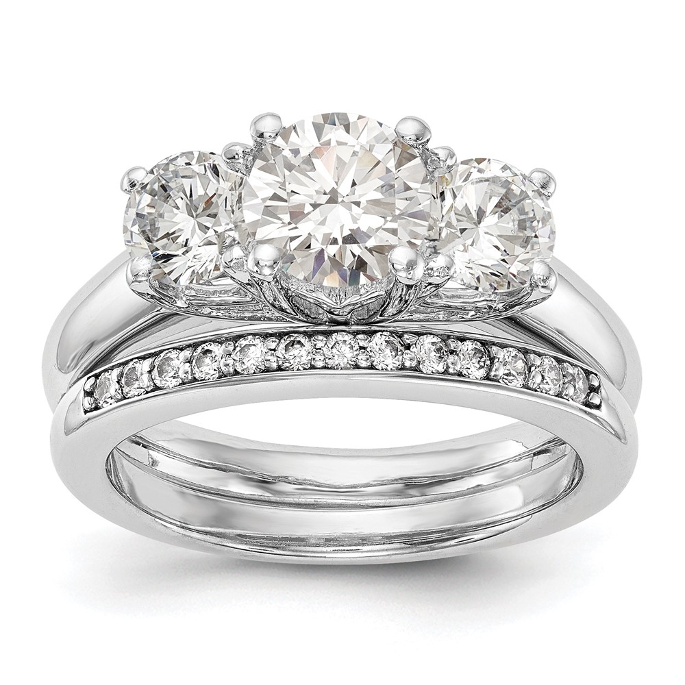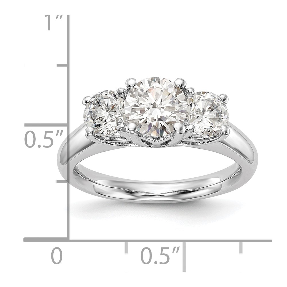 14K White Gold 3-Stone (Holds 1 carat (6.50mm) Round Center and (2-5.2mm) Round Sides) Engagement Ring Mounting