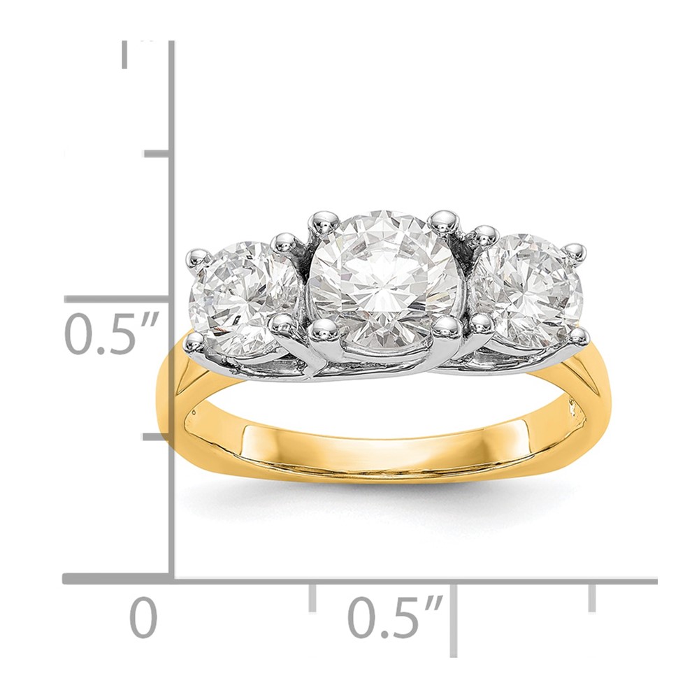 14K Two-tone 3-Stone (Holds 1.25 carat (7.00mm) Round Center and (2-5.7mm) Round Sides) Engagement Ring Mounting