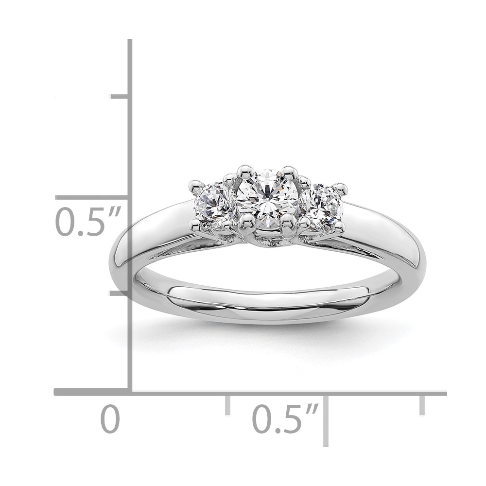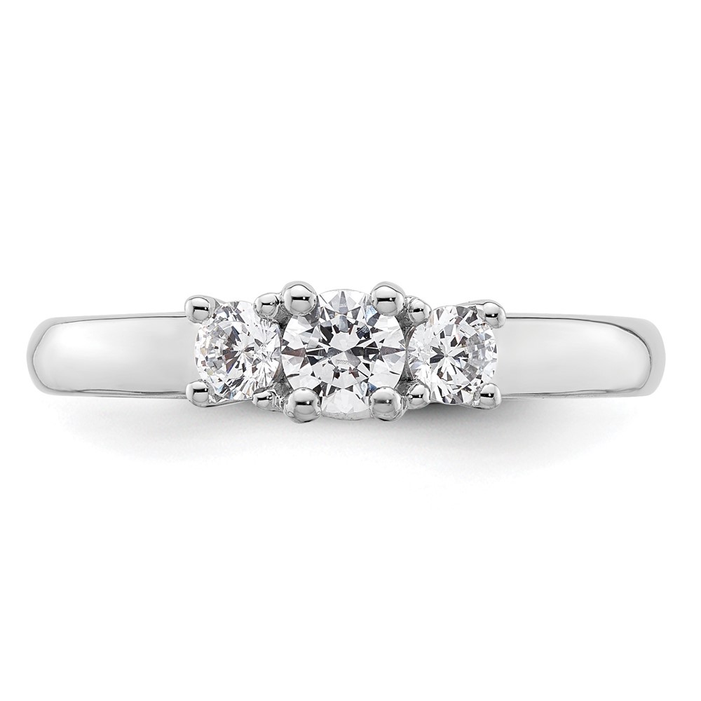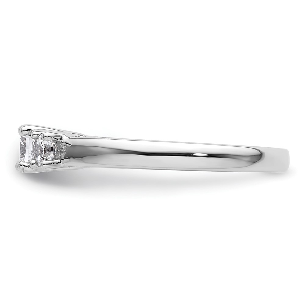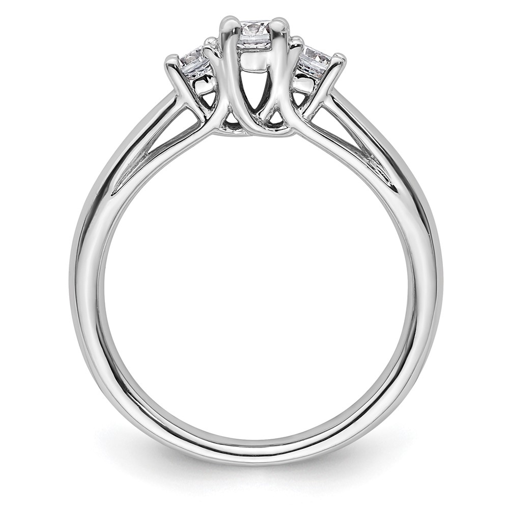 14K White Gold 3-Stone (Holds 1/4carat (4.1mm) Round Center and (2-3.2mm) Round Sides) Engagement Ring Mounting