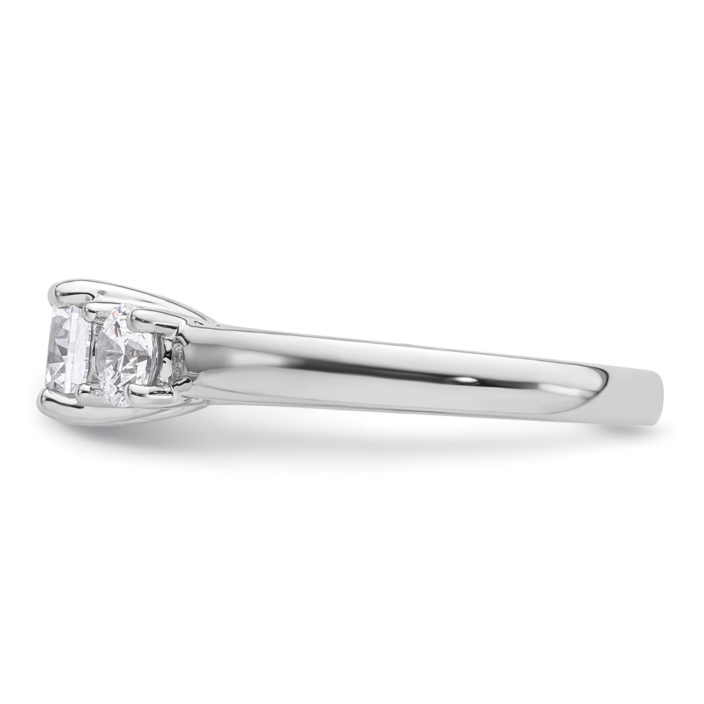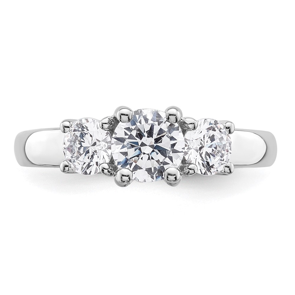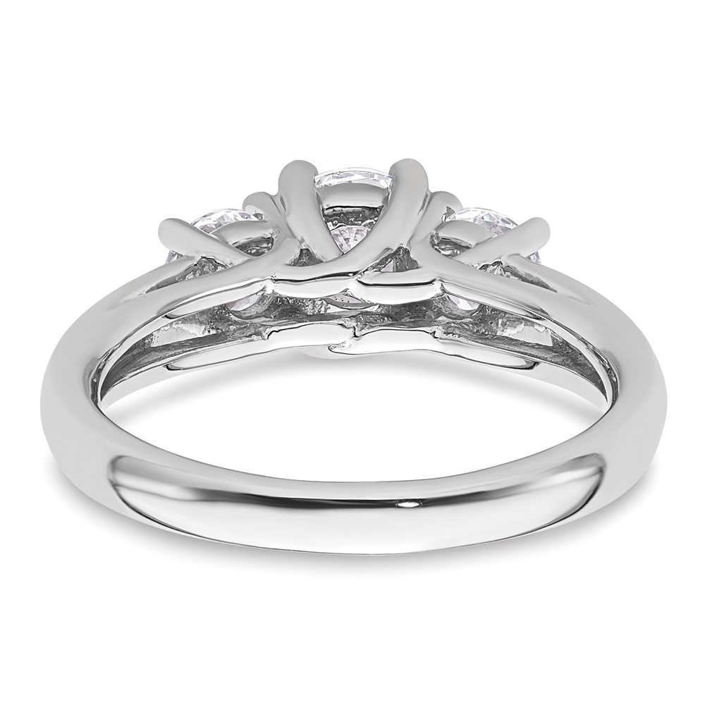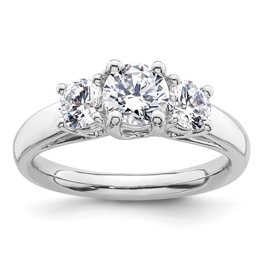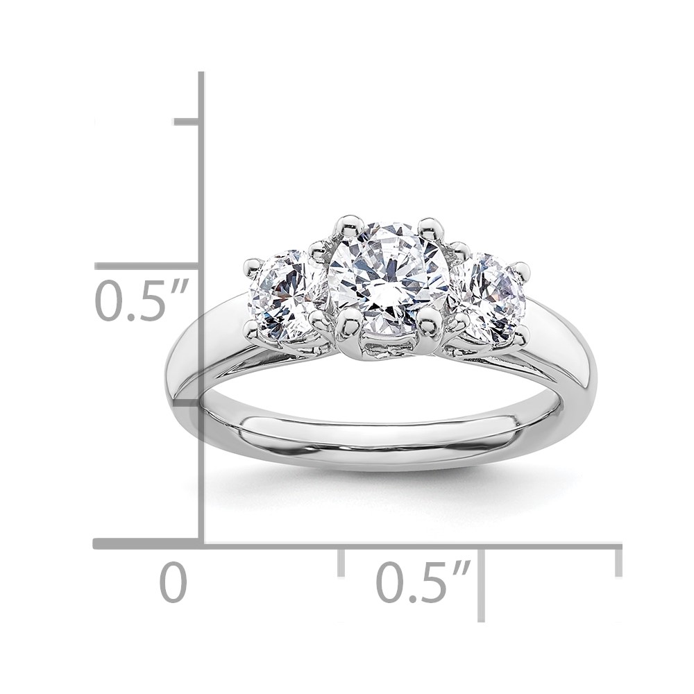 14K White Gold 3-Stone (Holds 3.4 carat (5.8mm) Round Center and (2 -4.6 mm) Round Sides) Engagement Ring Mounting
