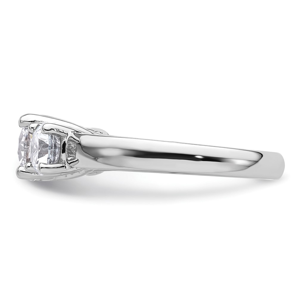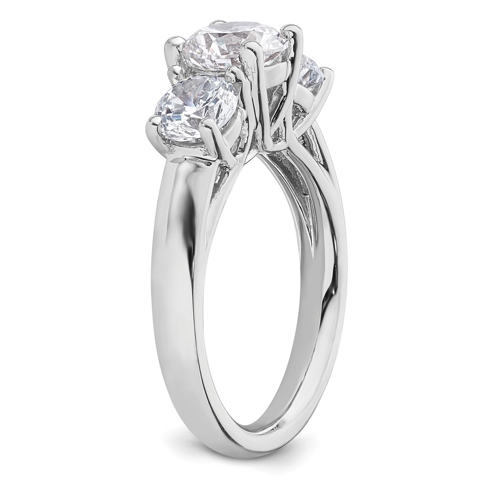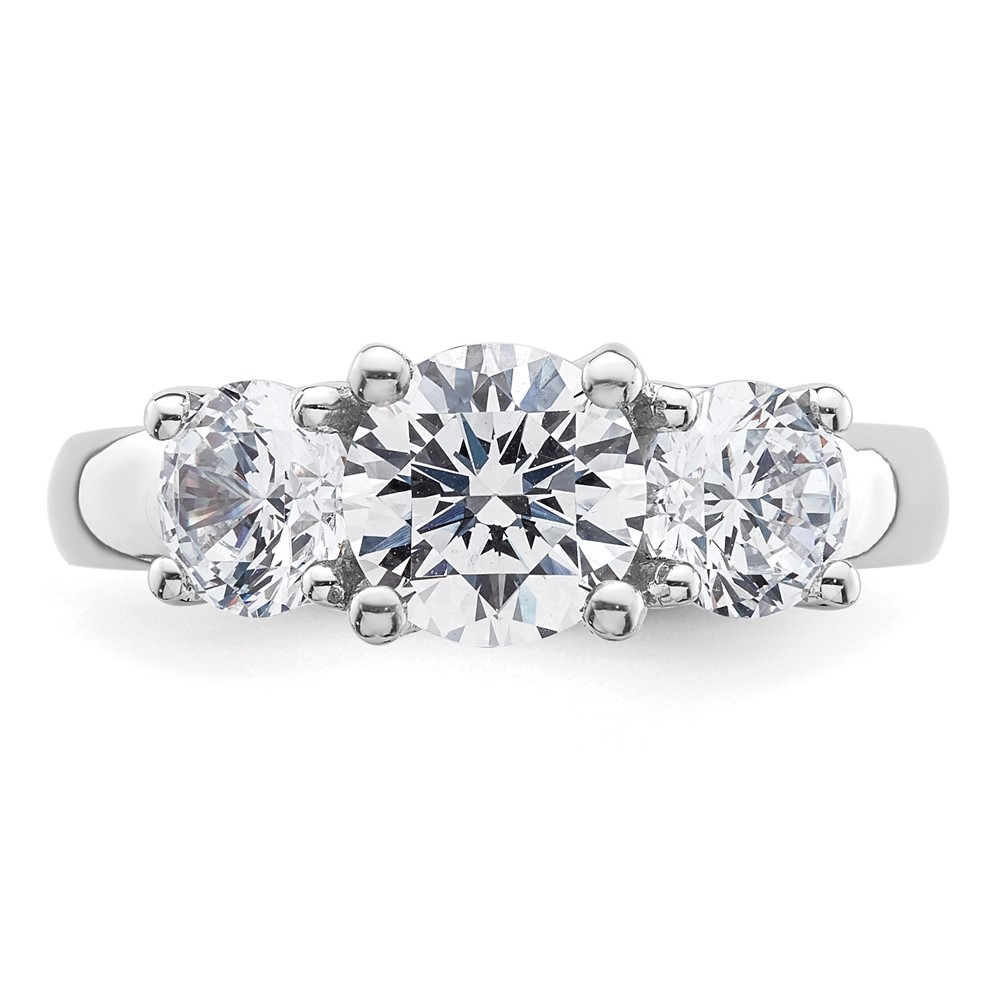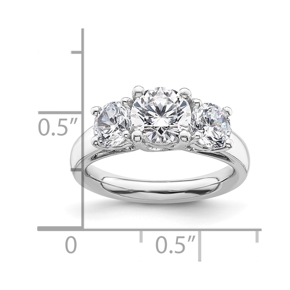 14K White Gold 3-Stone (Holds 1.25 carat (7.00mm) Round Center and (2-5.5mm) Round Sides) Engagement Ring Mounting