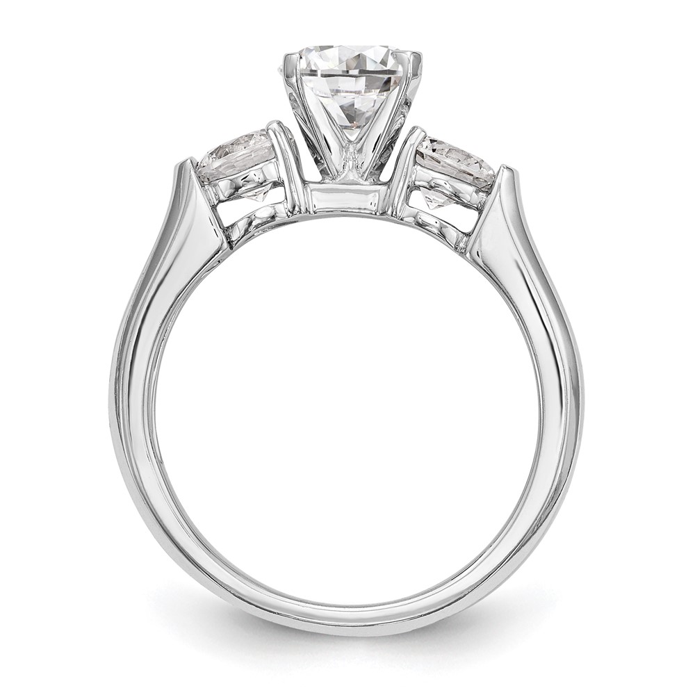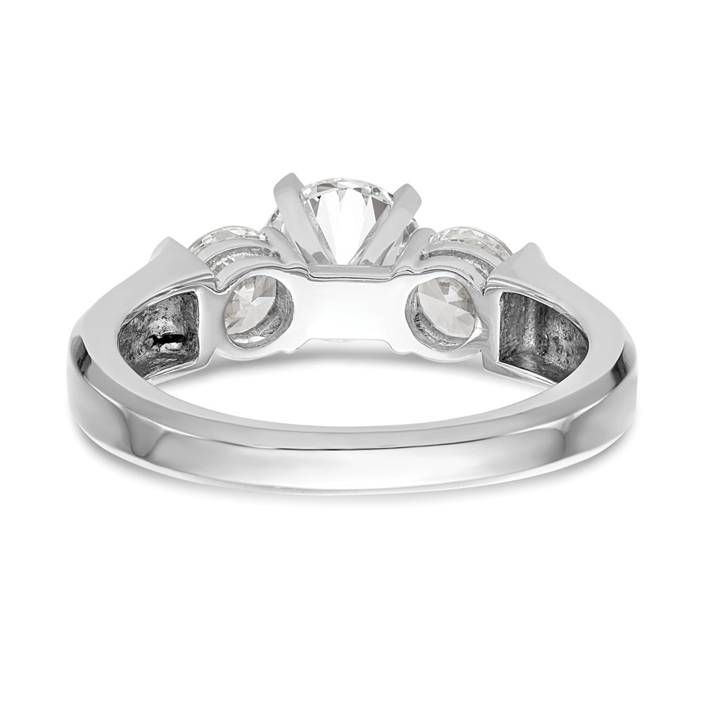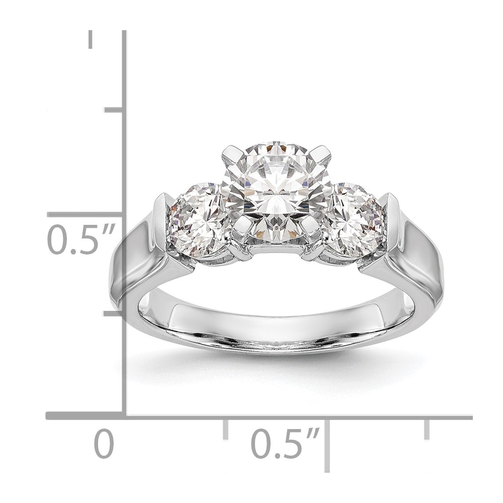 14K White Gold 3-Stone (Holds 1 carat (6.5mm) Round Center and (2-4.6mm) Round Sides) Engagement Ring Mounting