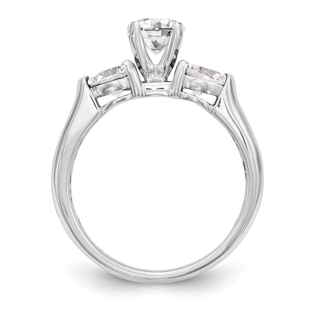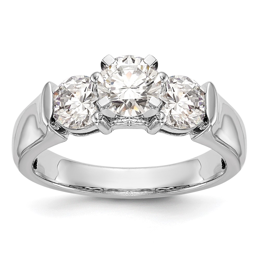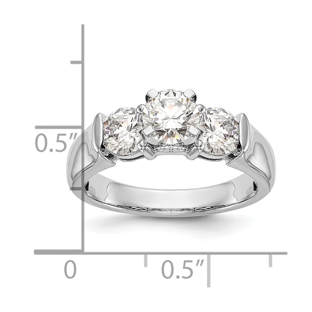 14K White Gold 3-Stone (Holds 1 carat (6.5mm) Round Center and (2-5.2mm) Round Sides) Engagement Ring Mounting