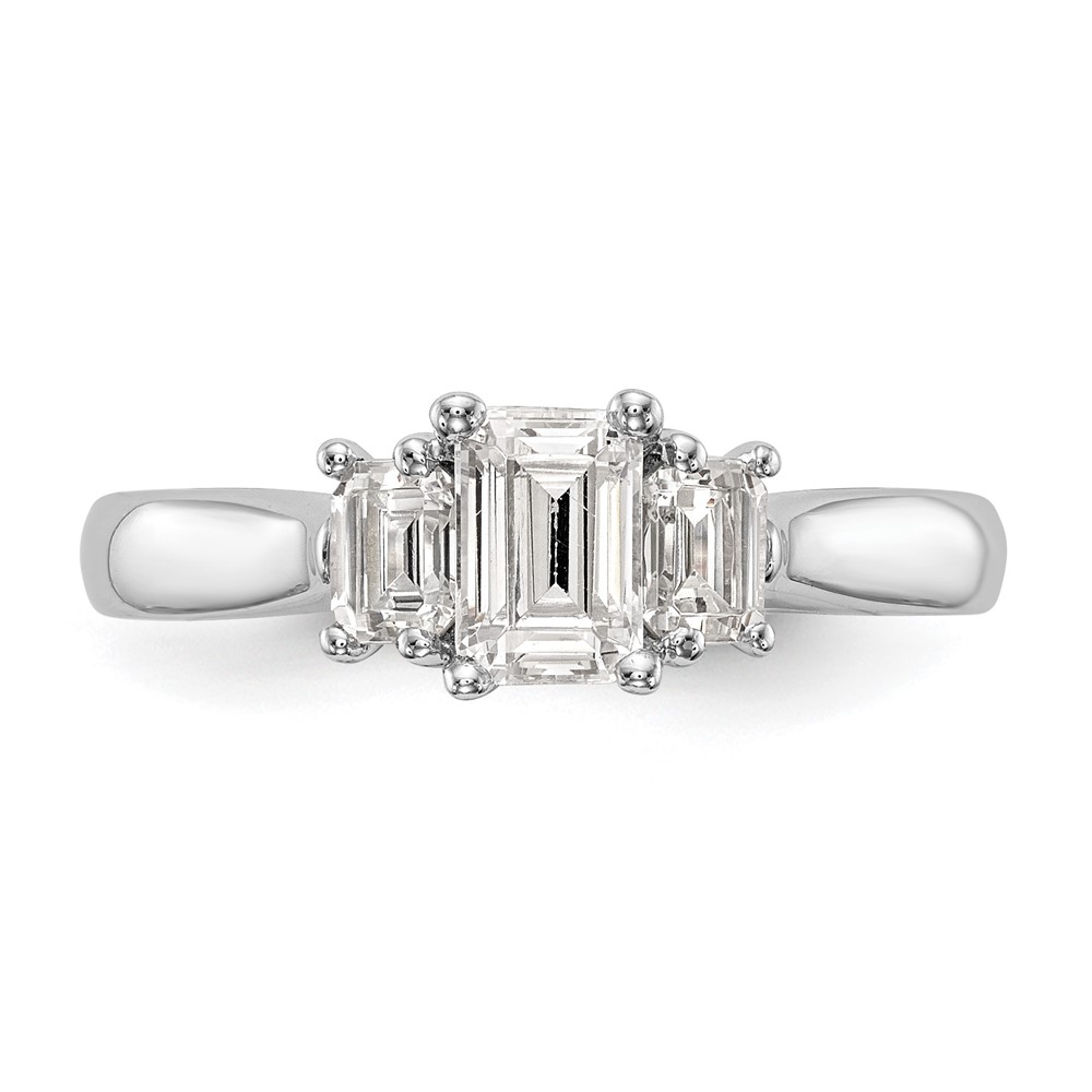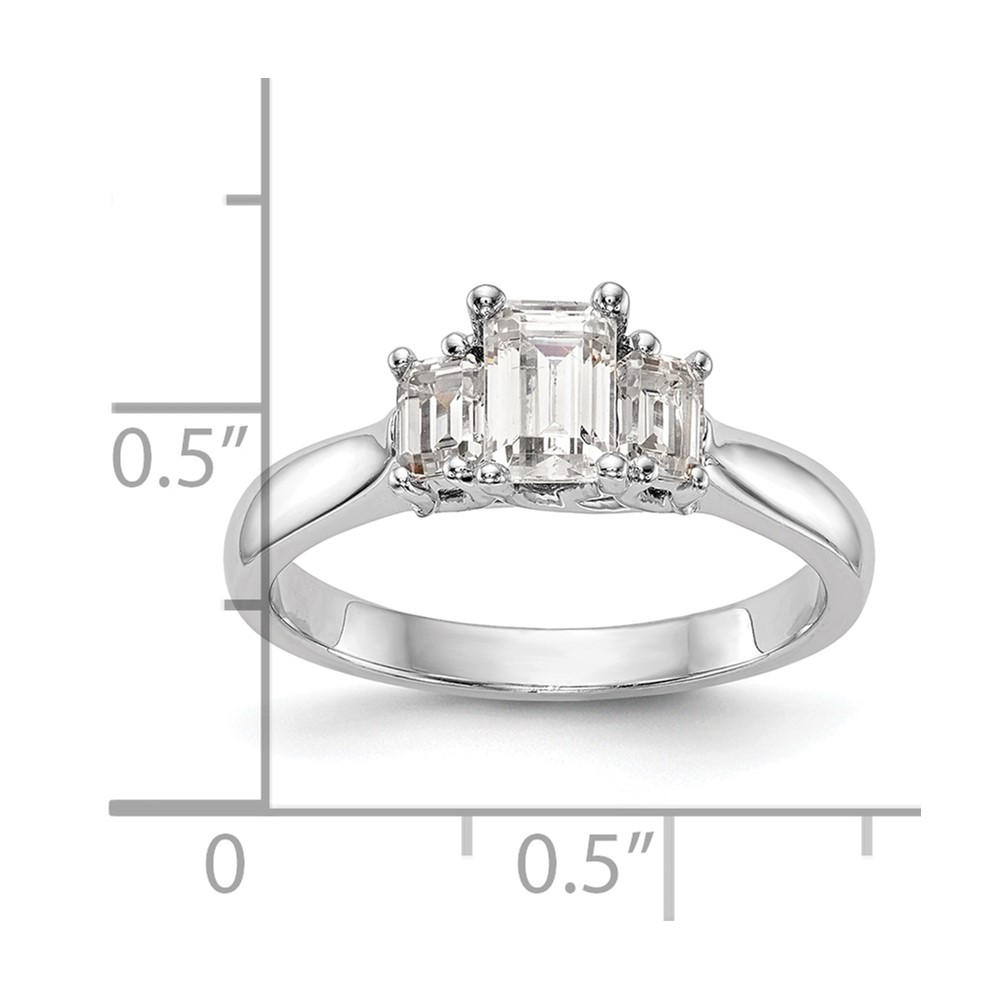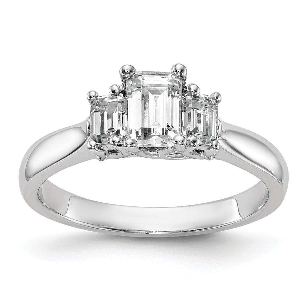 14K White Gold 3-Stone (Holds (5x4mm) Emerald-cut Center and (2-4x3mm) Emerald-cut Sides) Engagement Ring Mounting
