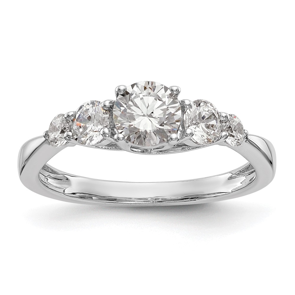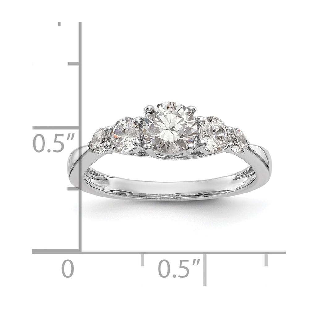 14K White Gold 5-Stone (Holds 1/2 carat (5.2mm) Round Center and (2-3.6/2-2.6) Round Sides) Engagement Ring Mounting