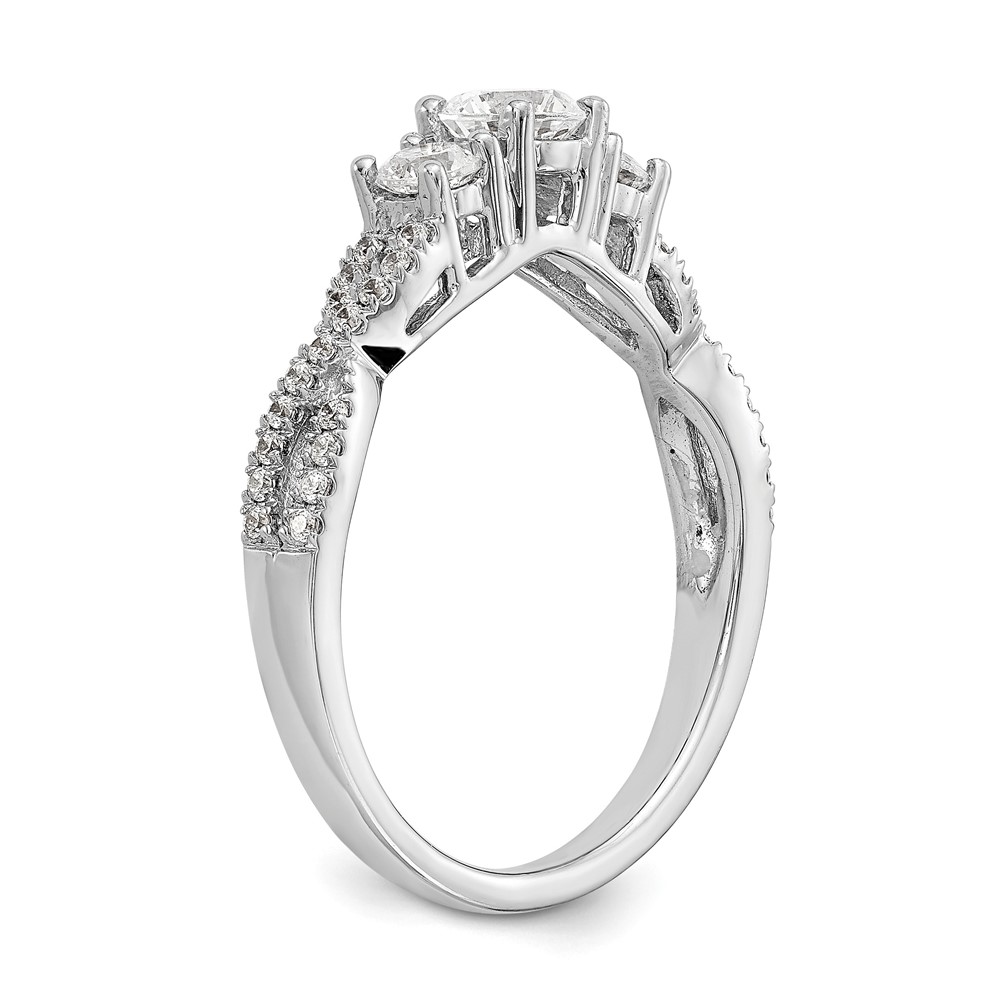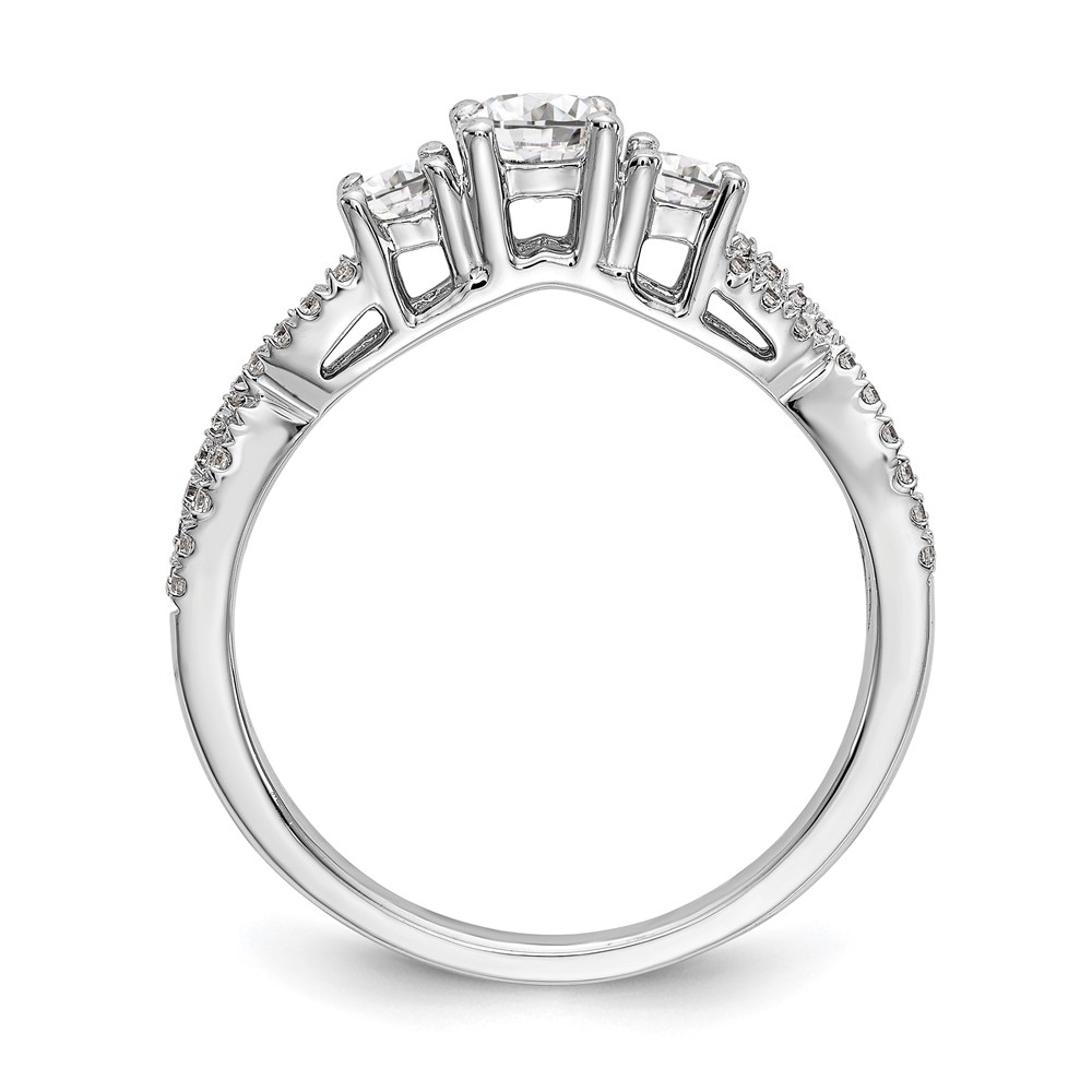 14K White Gold 3-Stone Plus (Holds 4.5mm Round Center) Diamond Semi-Mount Engagement Ring