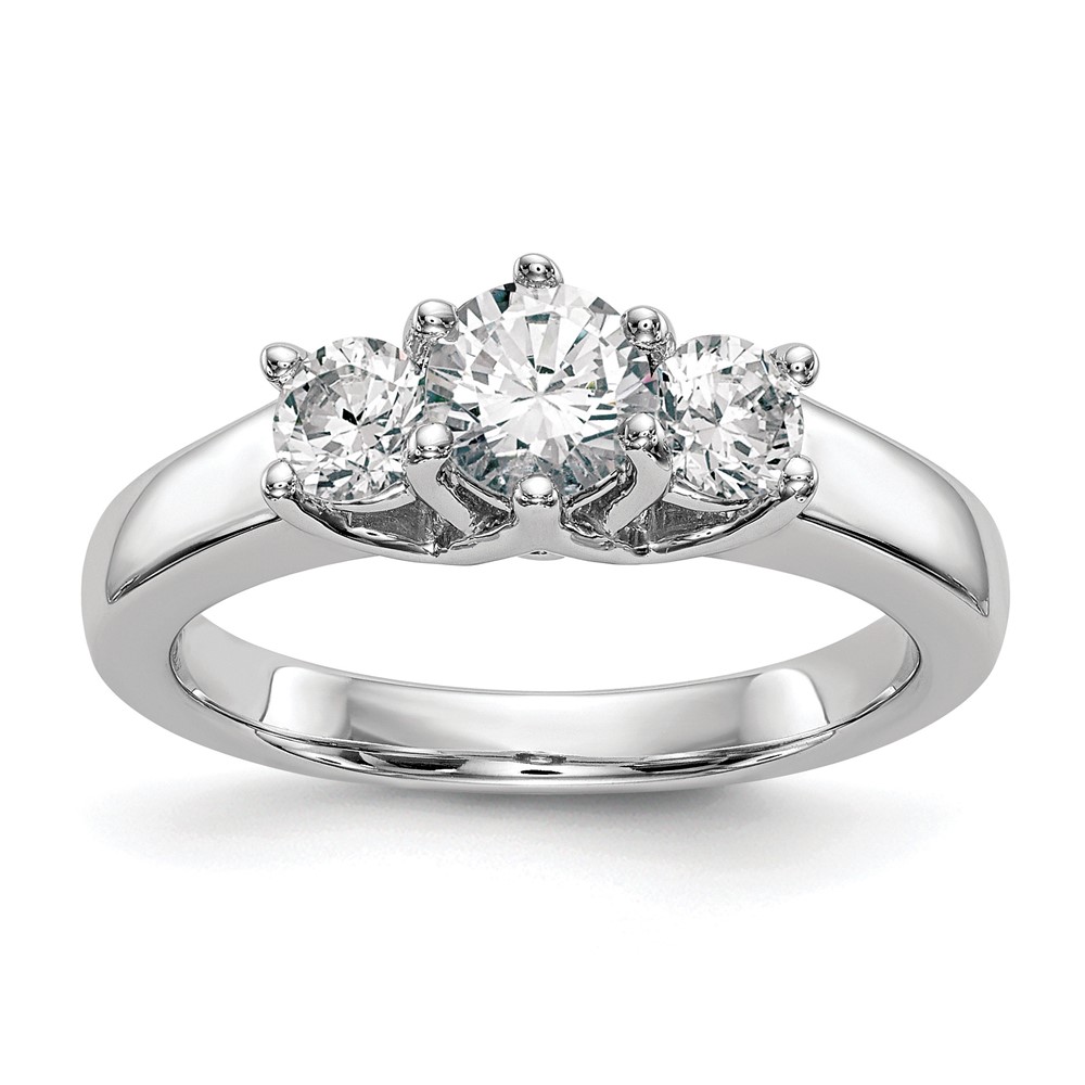 14K White Gold 3-Stone (Holds 1/2 carat (5.2mm) Round Center and (2-4.0mm) Round Sides) Engagement Ring Mounting