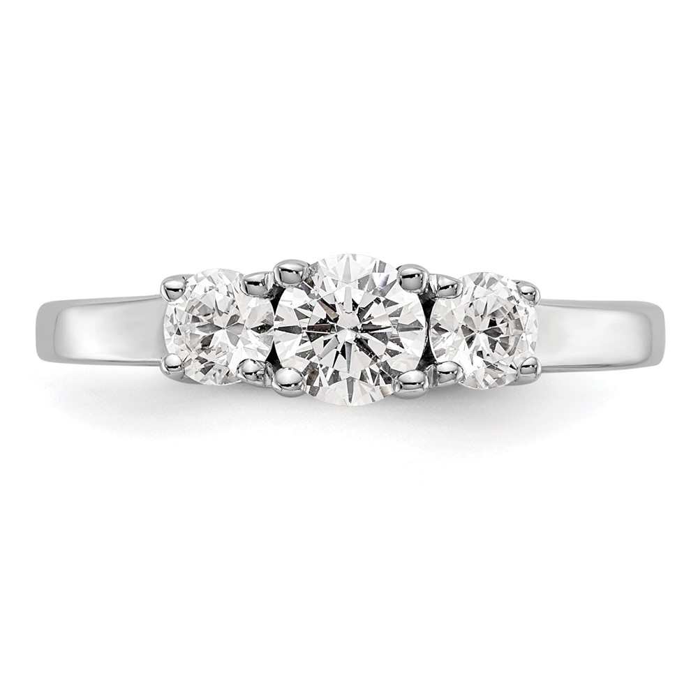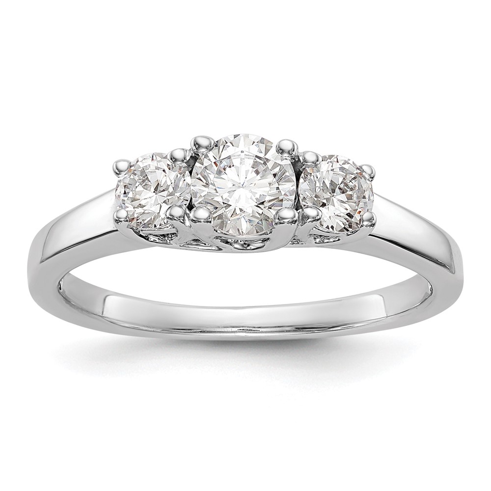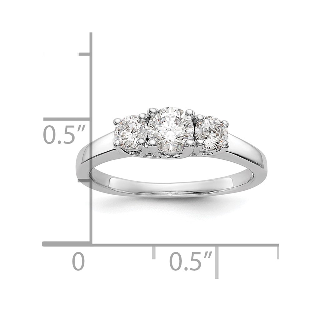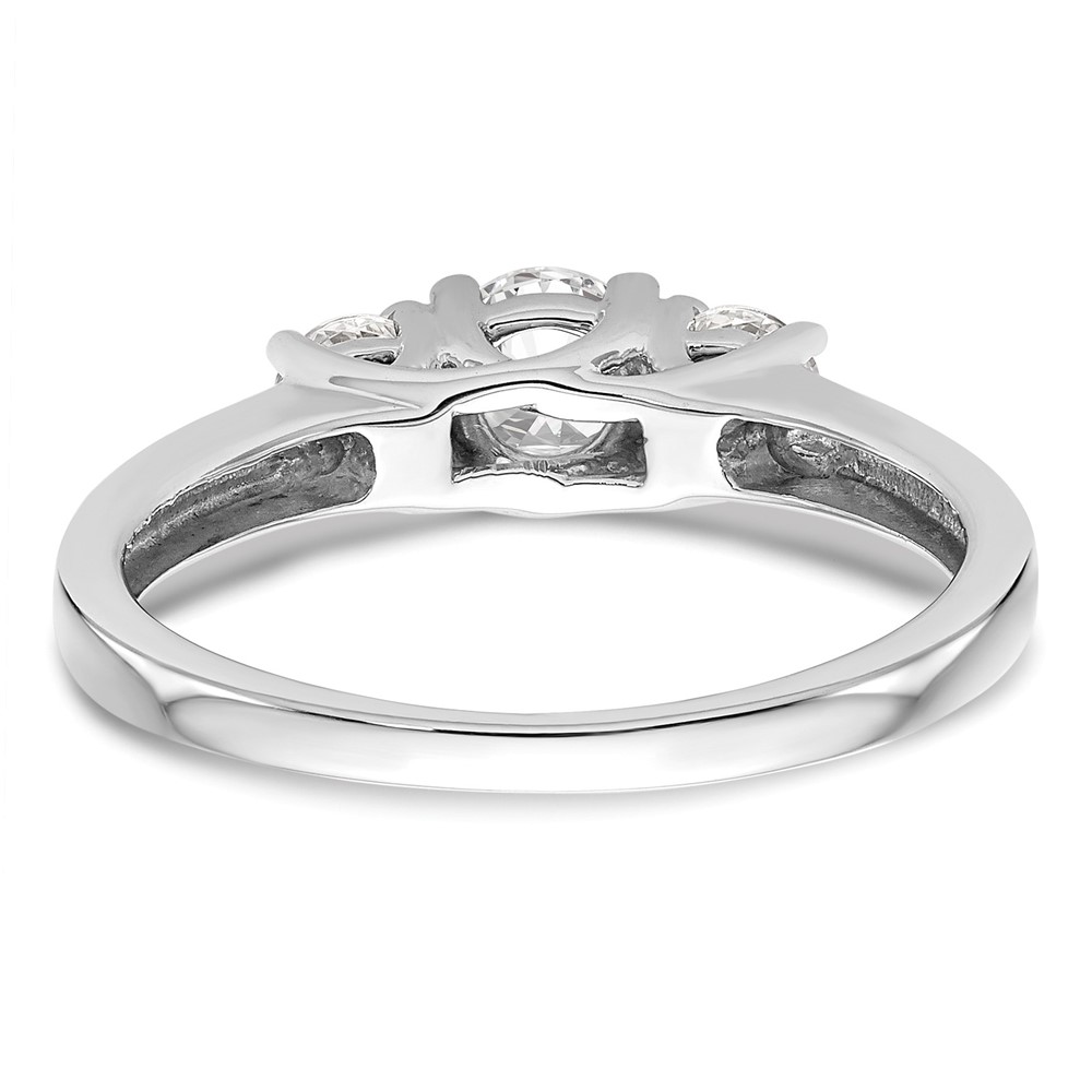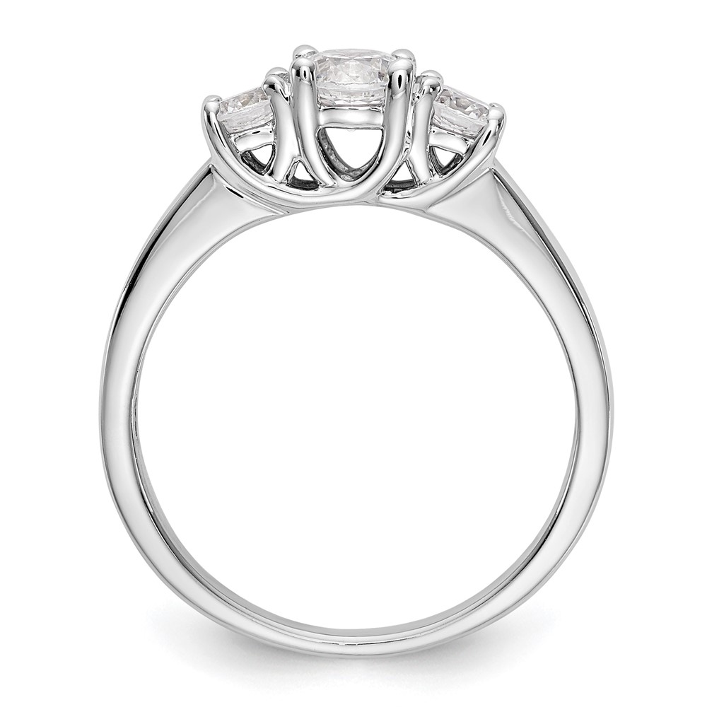 14K White Gold 3-Stone (Holds 3/8 carat (4.6mm) Round Center and (2-3.7mm) Round Sides) Engagement Ring Mounting