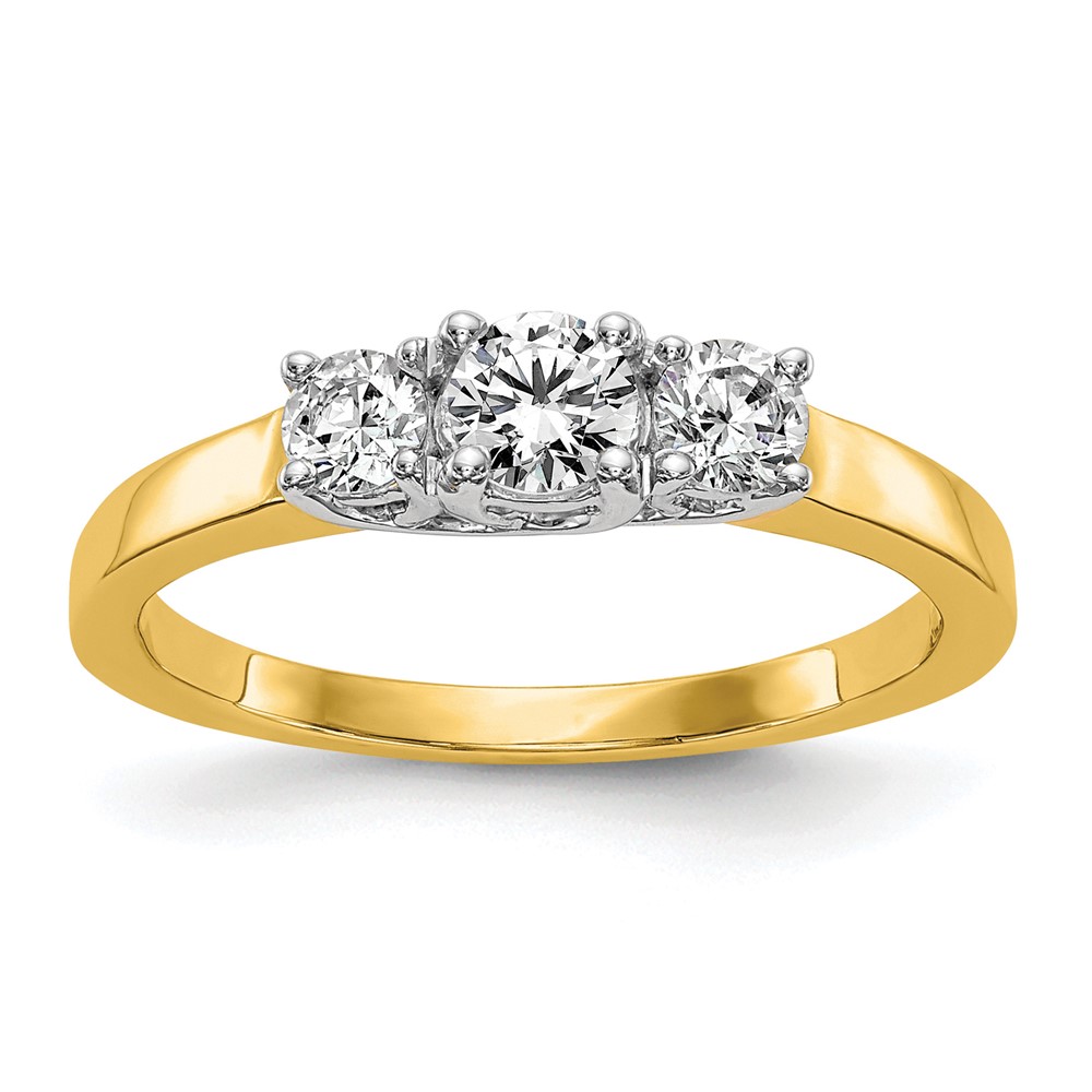 14K Two-tone 3-Stone (Holds 1/4 carat (4.1mm) Round Center and (2-3.2mm) Round Sides) Engagement Ring Mounting