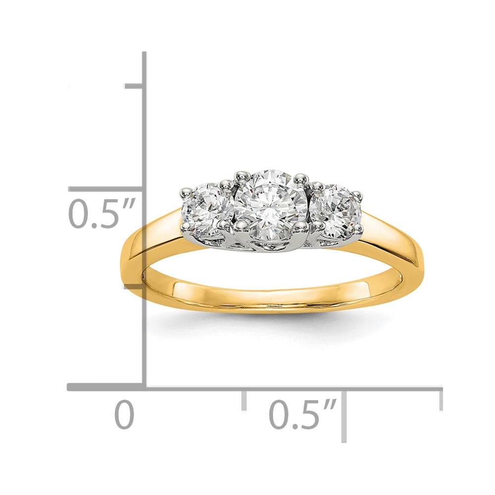 14K Two-tone 3-Stone (Holds 3/8 carat (4.6mm) Round Center and (2-3.7mm) Round Sides) Engagement Ring Mounting