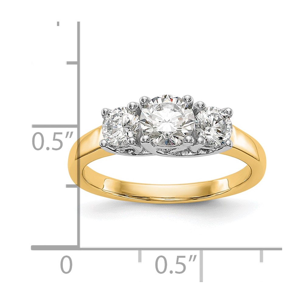 14K Two-tone 3-Stone (Holds 1/2 carat (5.2mm) Round Center and (2-4.00mm) Round Sides) Engagement Ring Mounting
