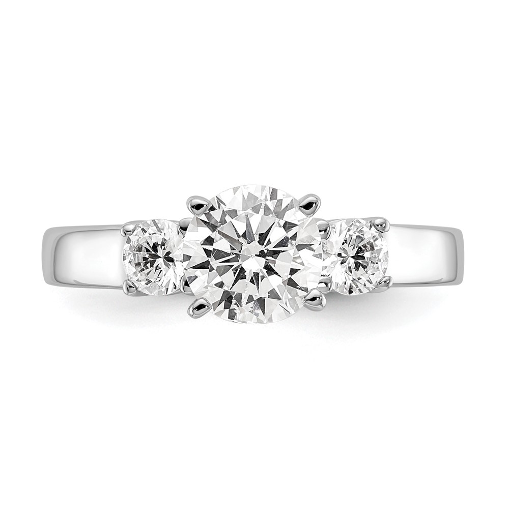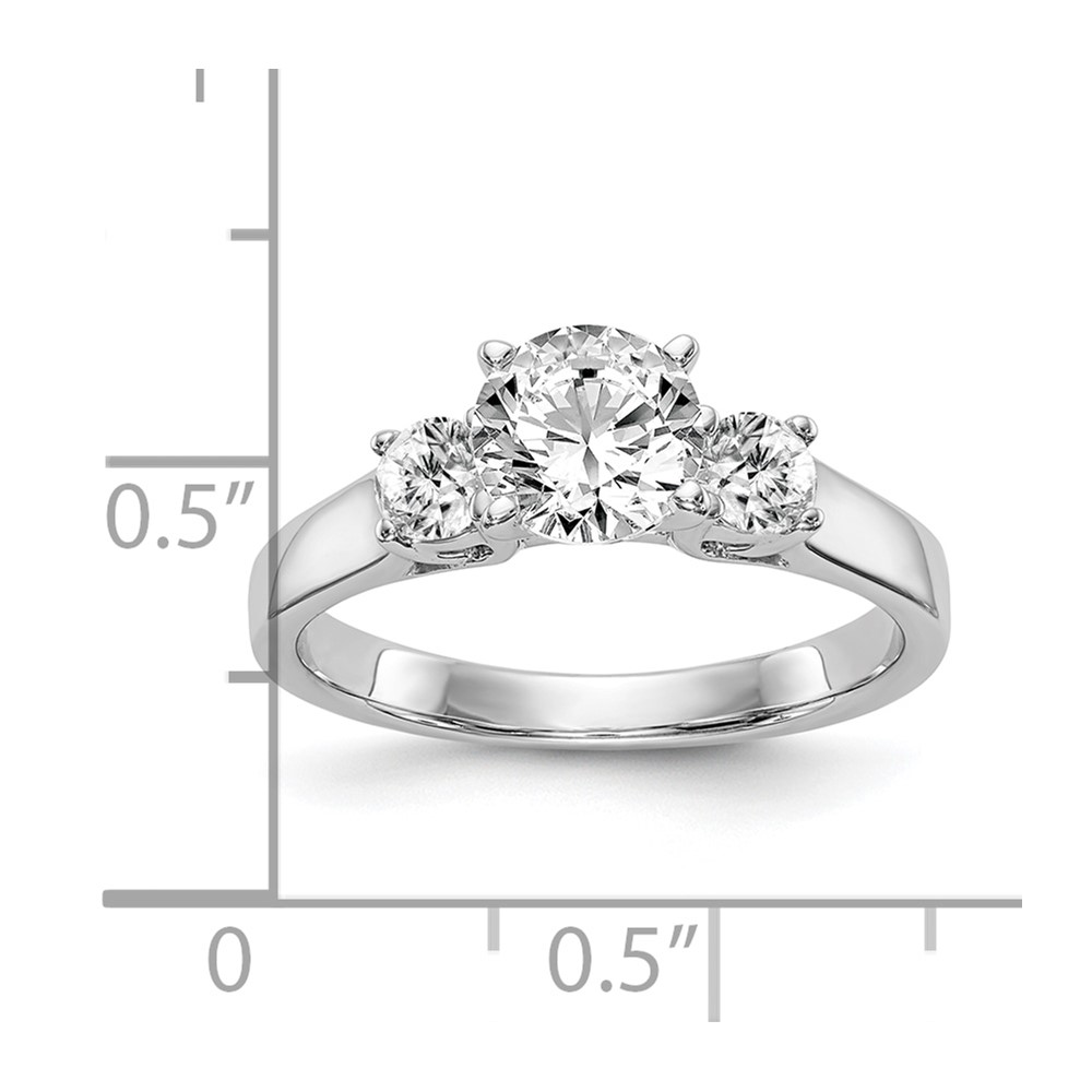 14K White Gold 3-Stone Peg Set Center (Holds (2-3.5mm) Round Sides) Engagement Ring Mounting