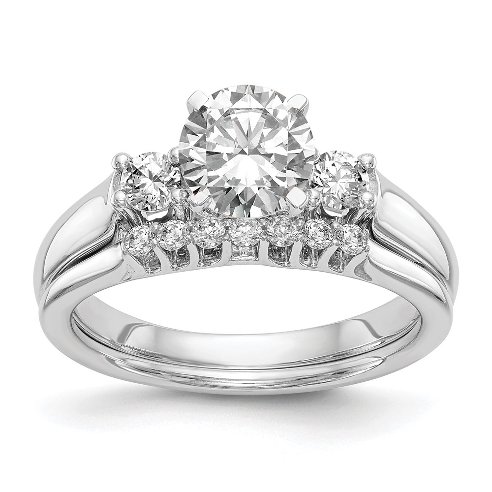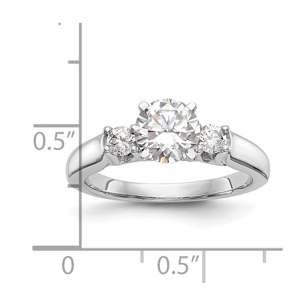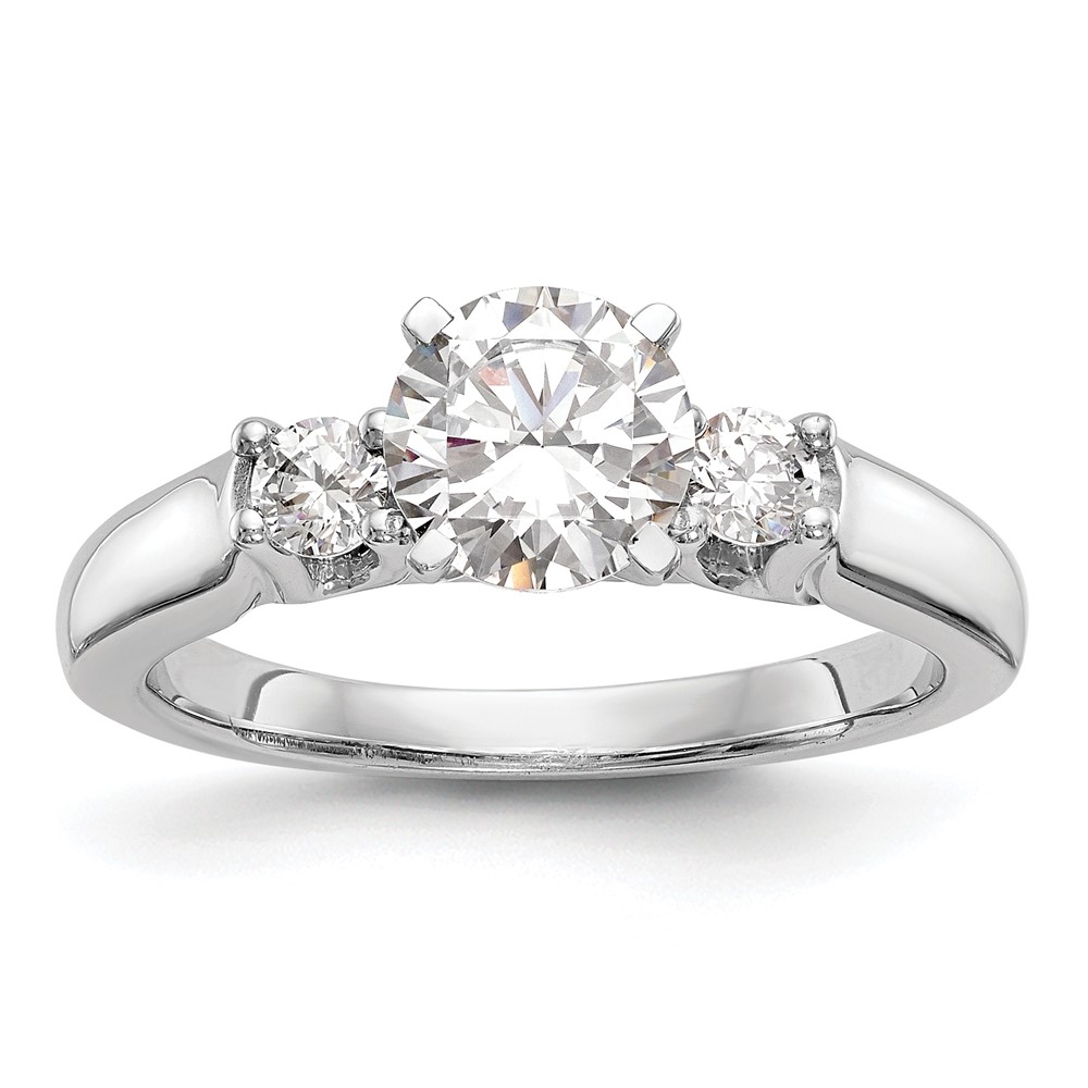 14K White Gold 3-Stone Peg Set Center (Holds (2-2.9mm) Round Sides) Engagement Ring Mounting