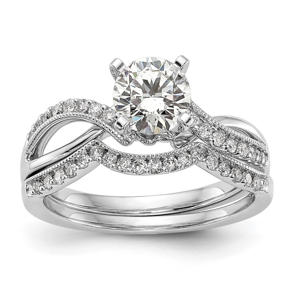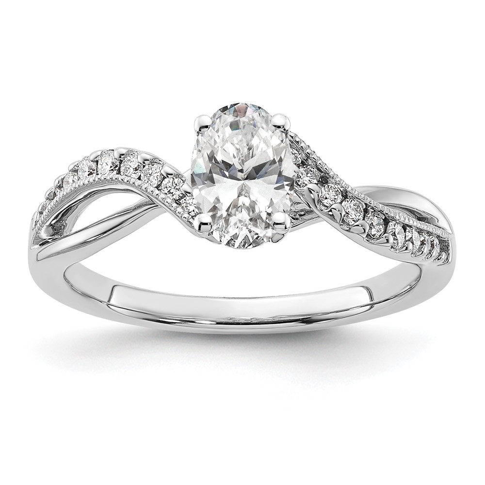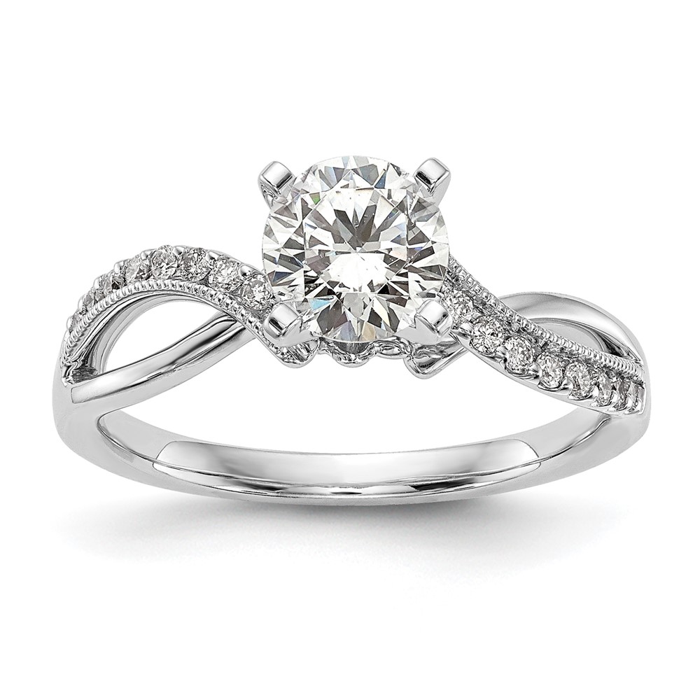 14k White Gold Criss-Cross Peg Set Engagement Ring Mounting