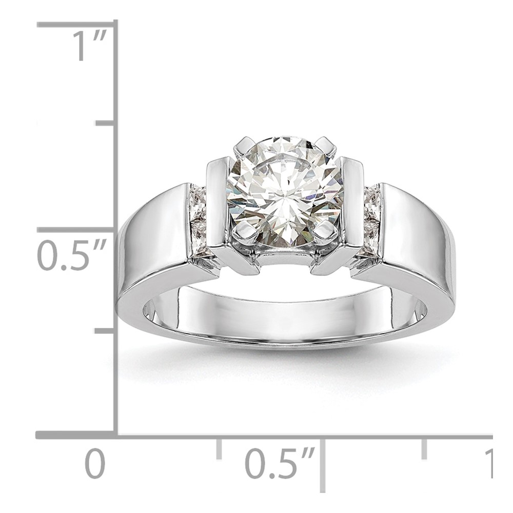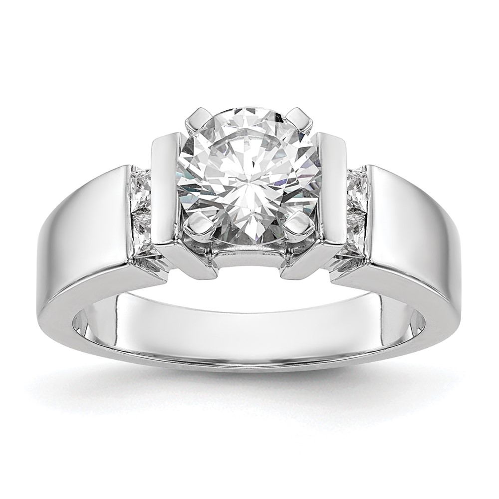 14K White Gold 3-Stone Peg Set Center (Holds (2-4.00mm) Round Sides) Engagement Ring Mounting