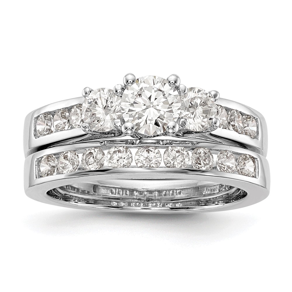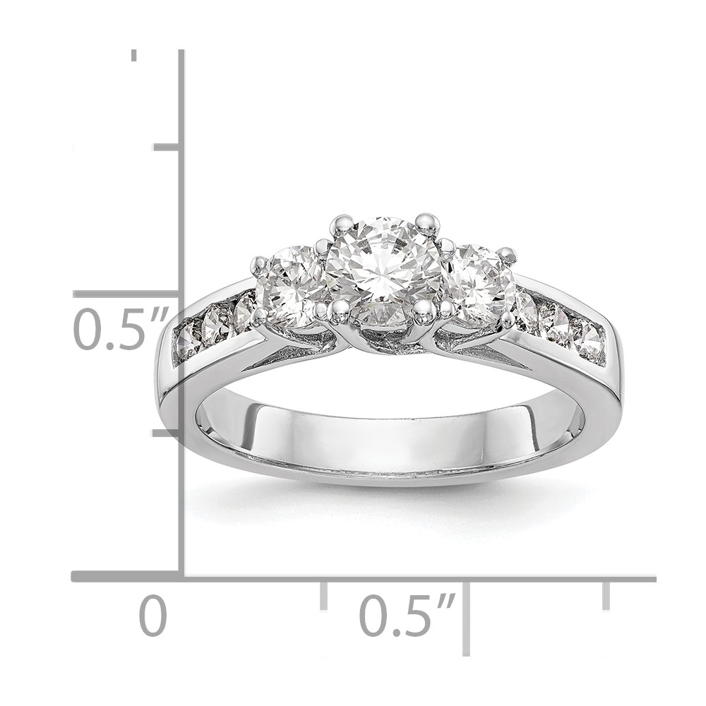 14K White Gold 3-Stone Plus (Holds 3/4 (5.8mm) Round Center and (2-4.8mm) Round Sides) Engagement Ring Mounting
