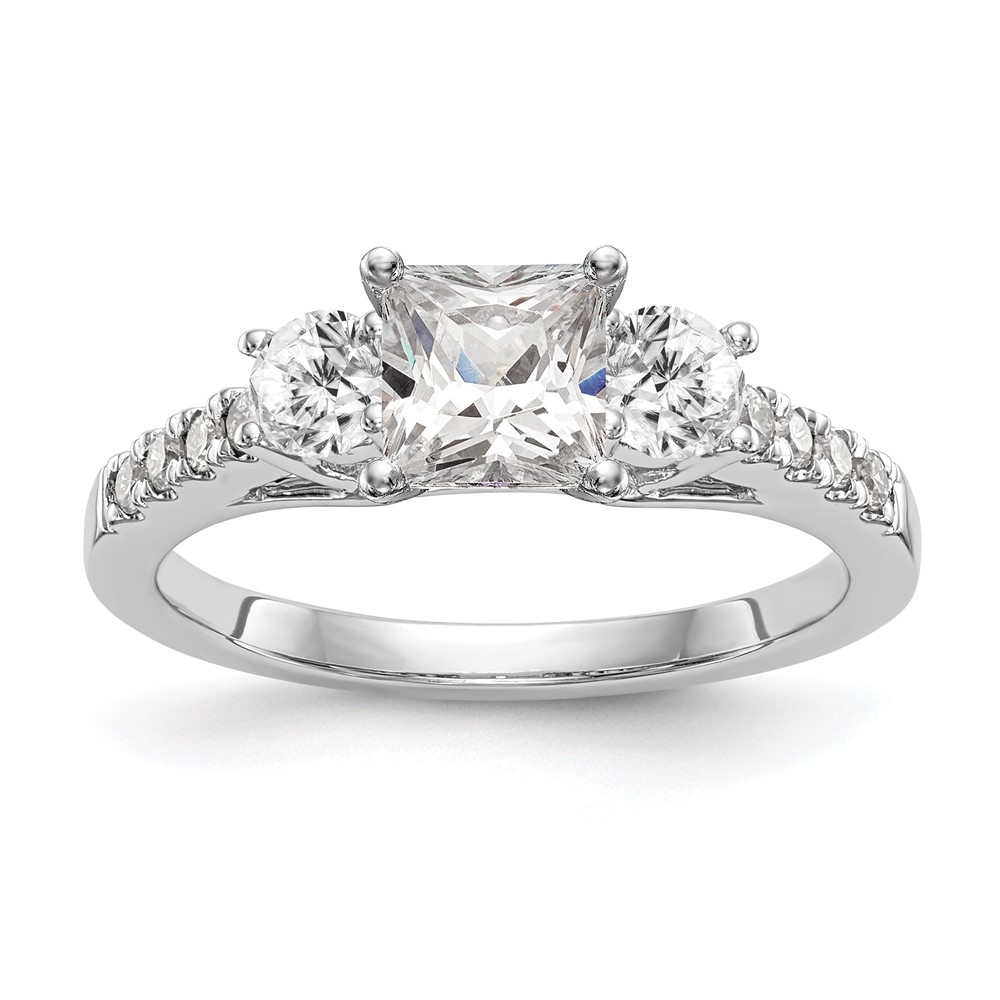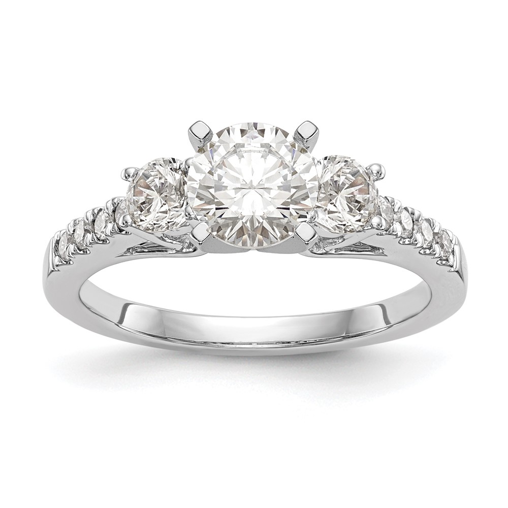14K White Gold 3-Stone Plus Peg Set Center (Holds (2-3.9mm) Round Sides) Engagement Ring Mounting
