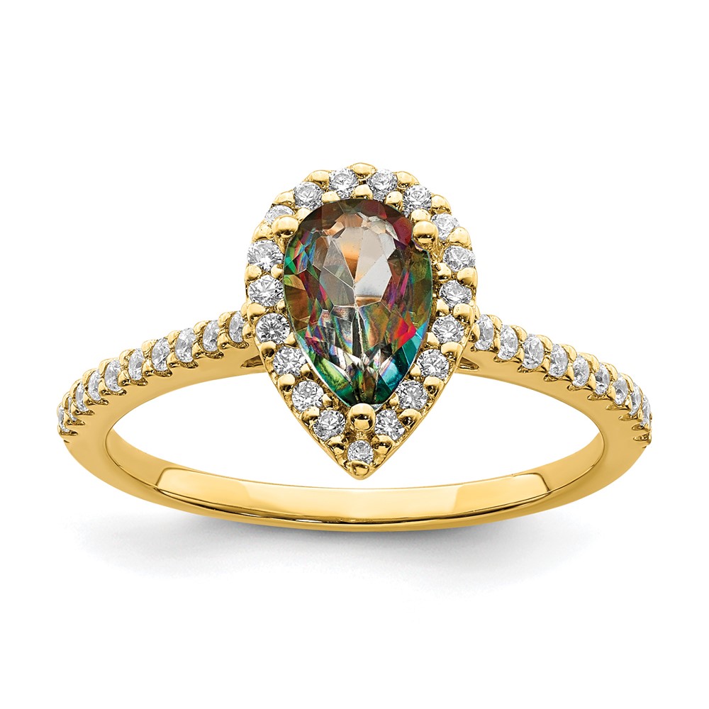 Blooming Bridal 14k Halo 8x5mm Pear-cut Mystic Fire Topaz and 1/4 carat Diamond Complete Engagement Ring