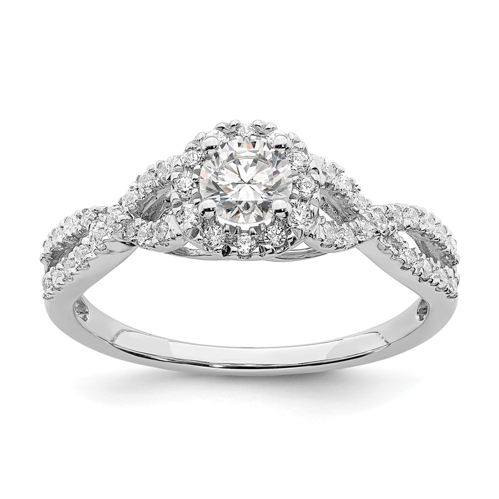 14k White Gold Halo Plus (Holds 1/3 carat (4.5mm Round Center) 1/4 carat Diamond Semi-Mount Engagement Ring